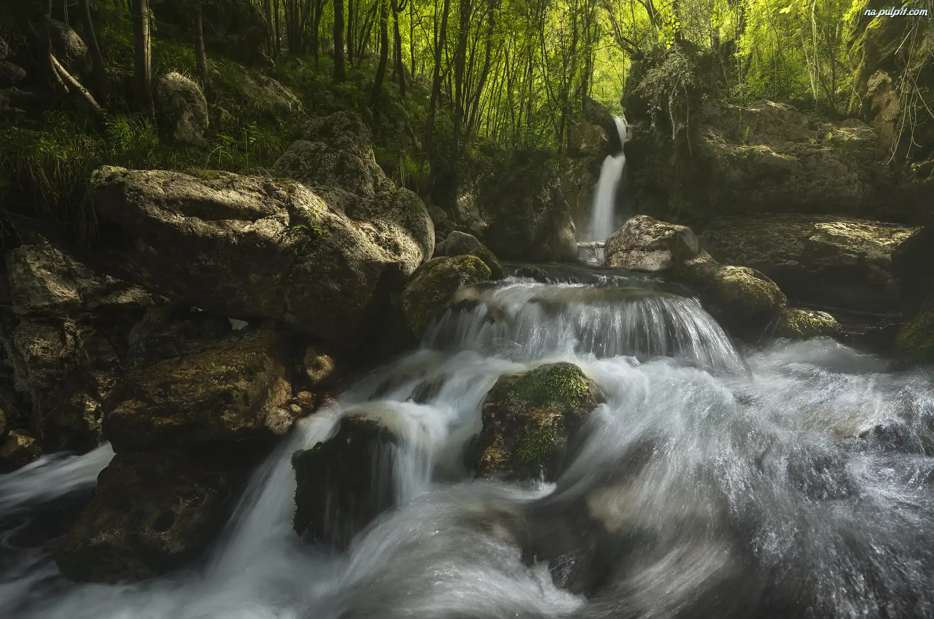 Kamienie, Las, Rzeka, Rwąca, Skały