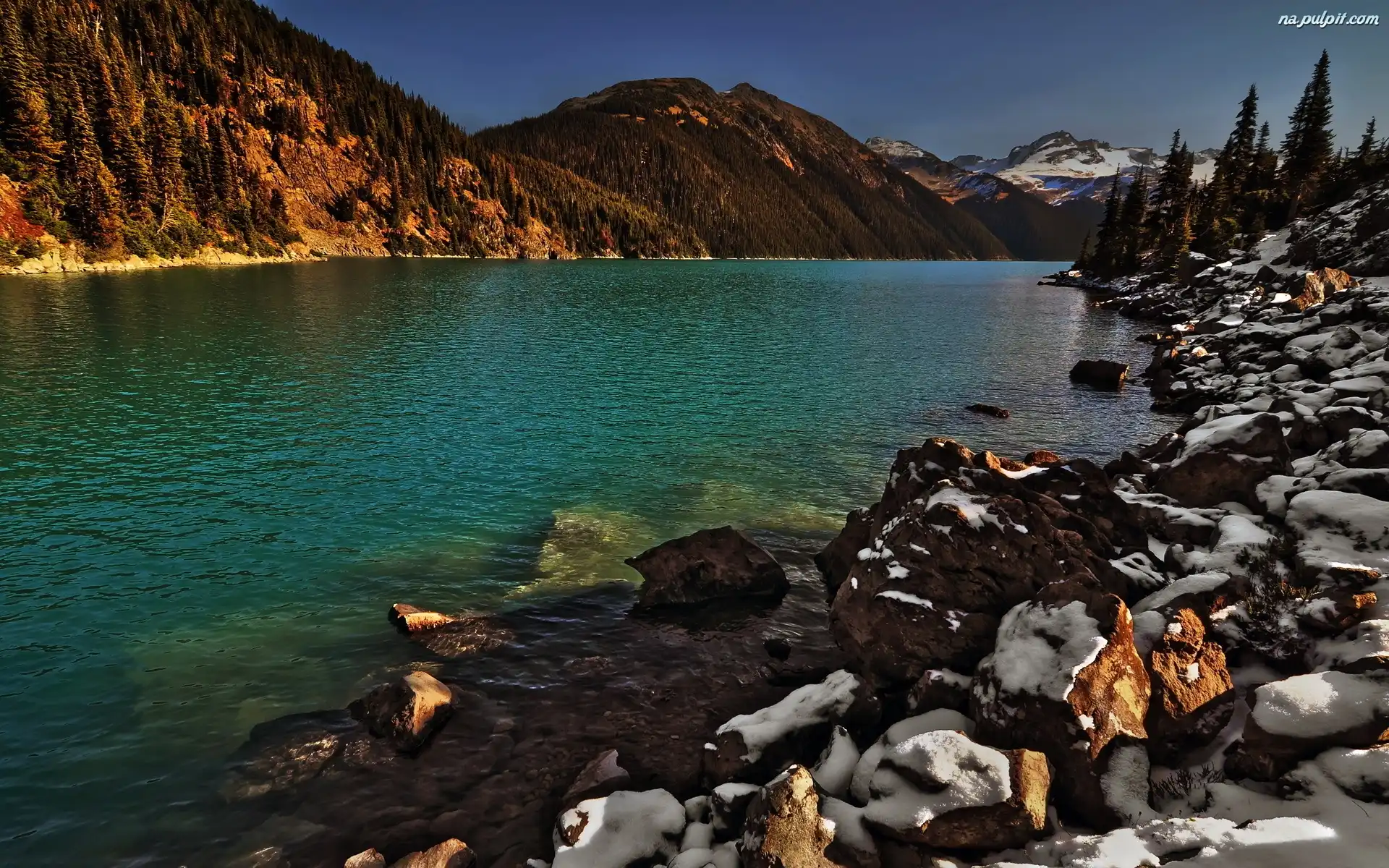 Kamienie, Góry, Rzeka, Ośnieżone Na Pulpit
