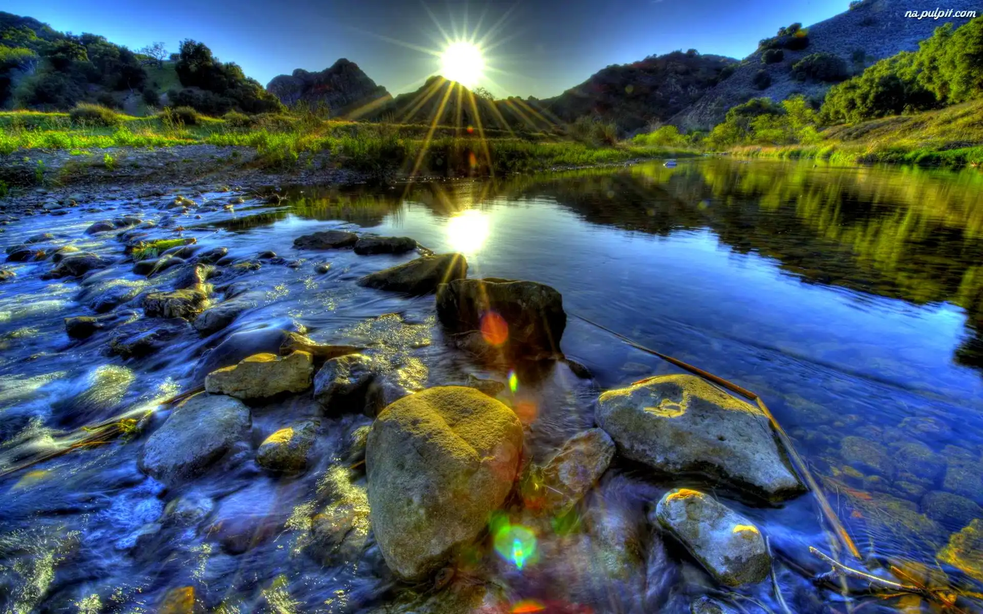 Kamienie, Jezioro, Słońce, Góry Na Pulpit