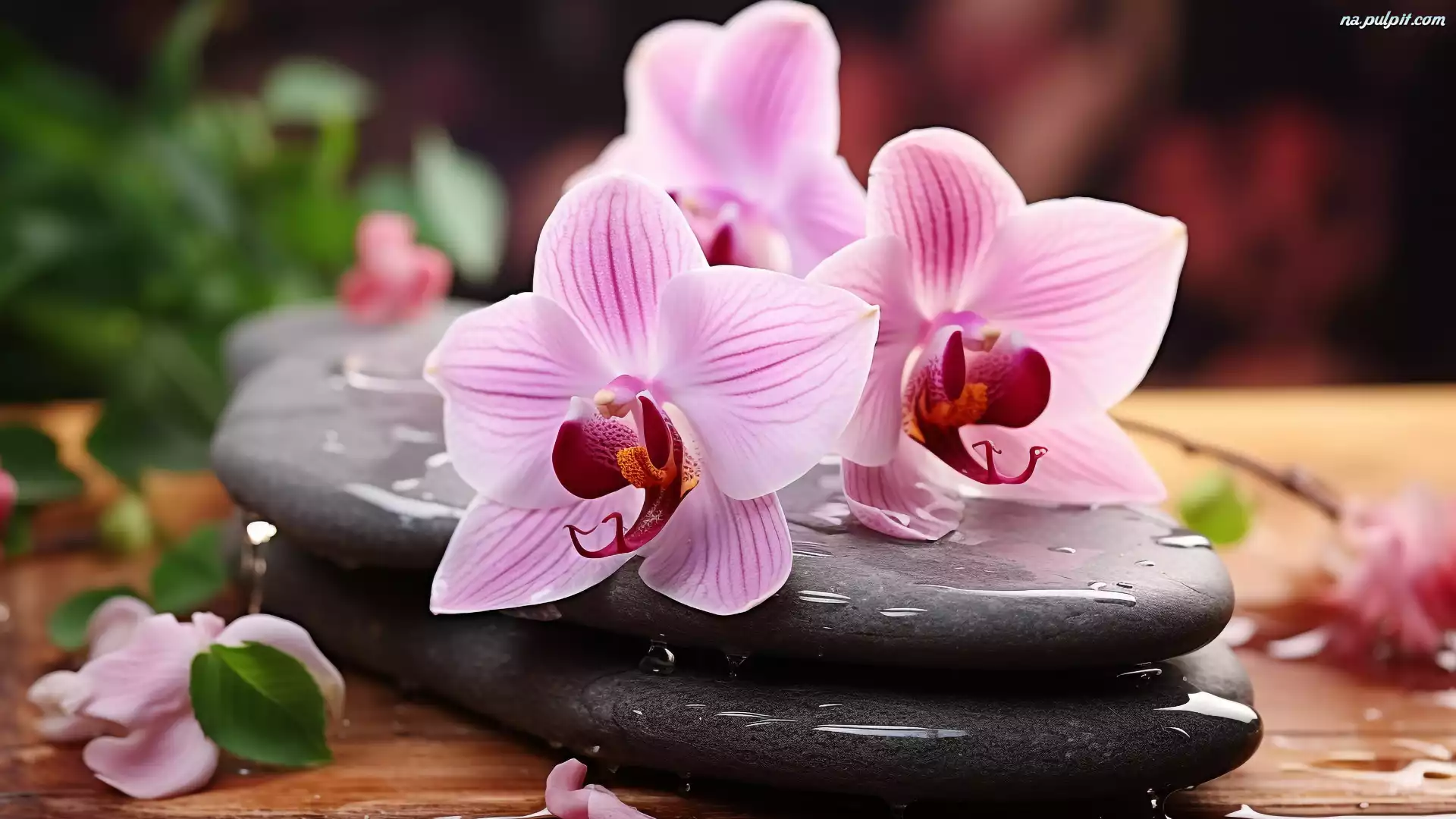 Listki, Różowe, Storczyk, Kamienie, Kwiaty, Spa Na Pulpit