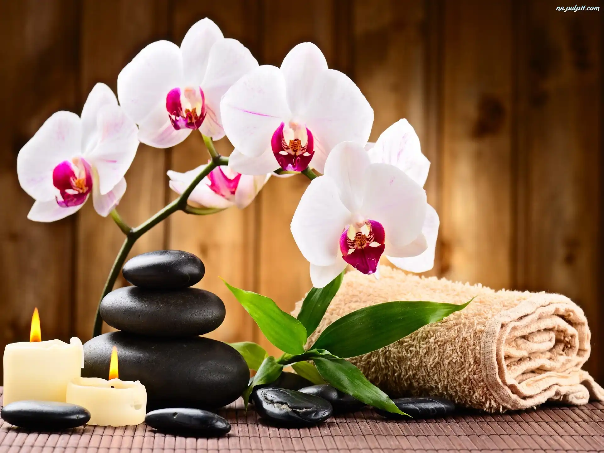 Kamienie, Kwiaty, Świece, Spa, Ręcznik Na Pulpit