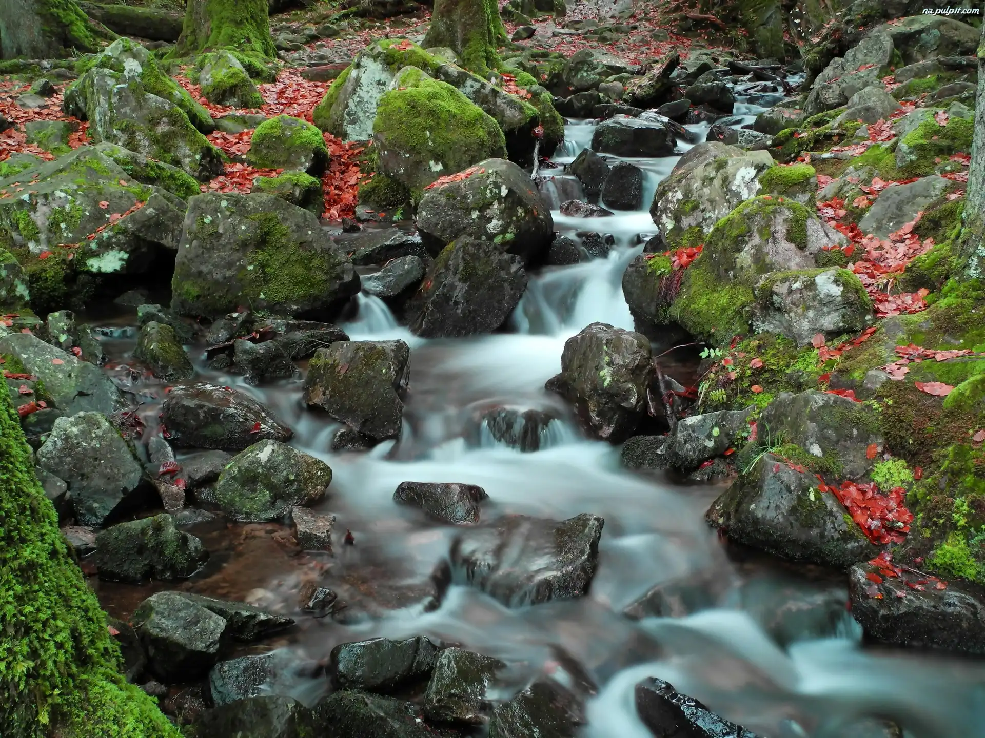 Kamienie, Kaskada, Strumyk, Omszałe Na Pulpit