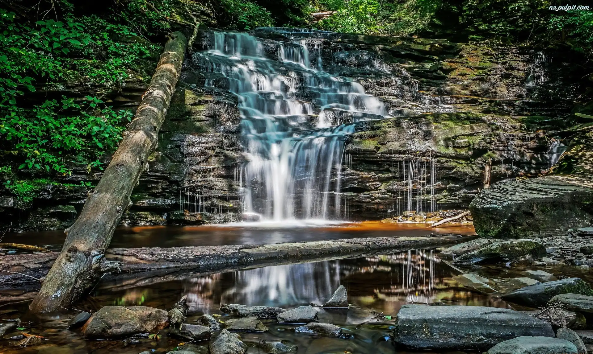 Kamienie, Skały, Wodospad, Drzewa Na Pulpit