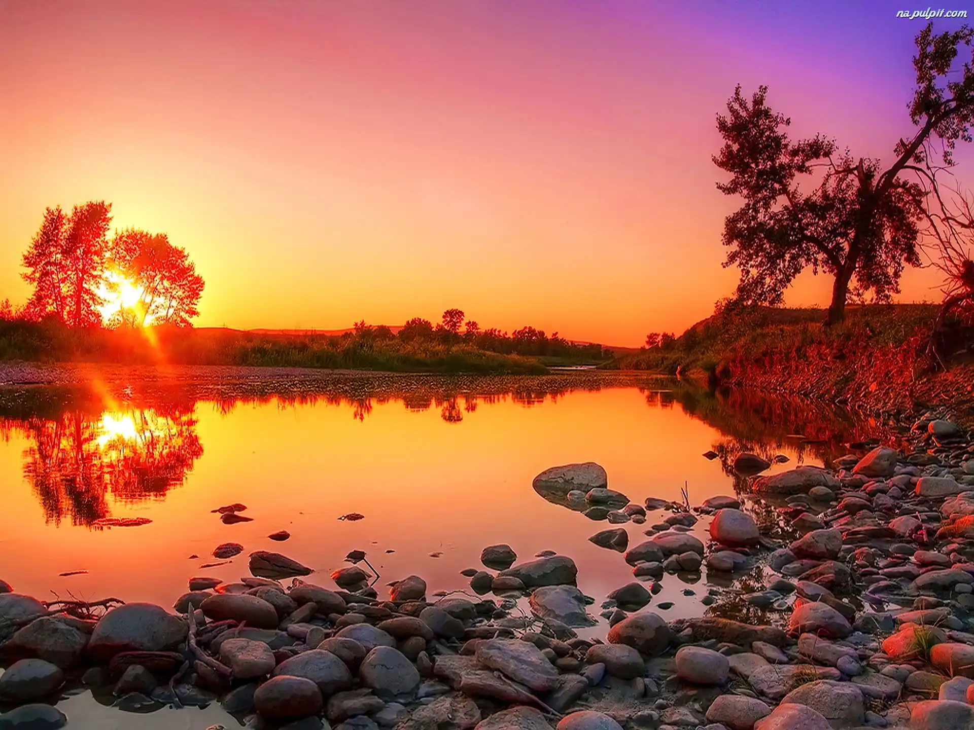 Kamienie, Słońca, Zachód, Jezioro Na Pulpit