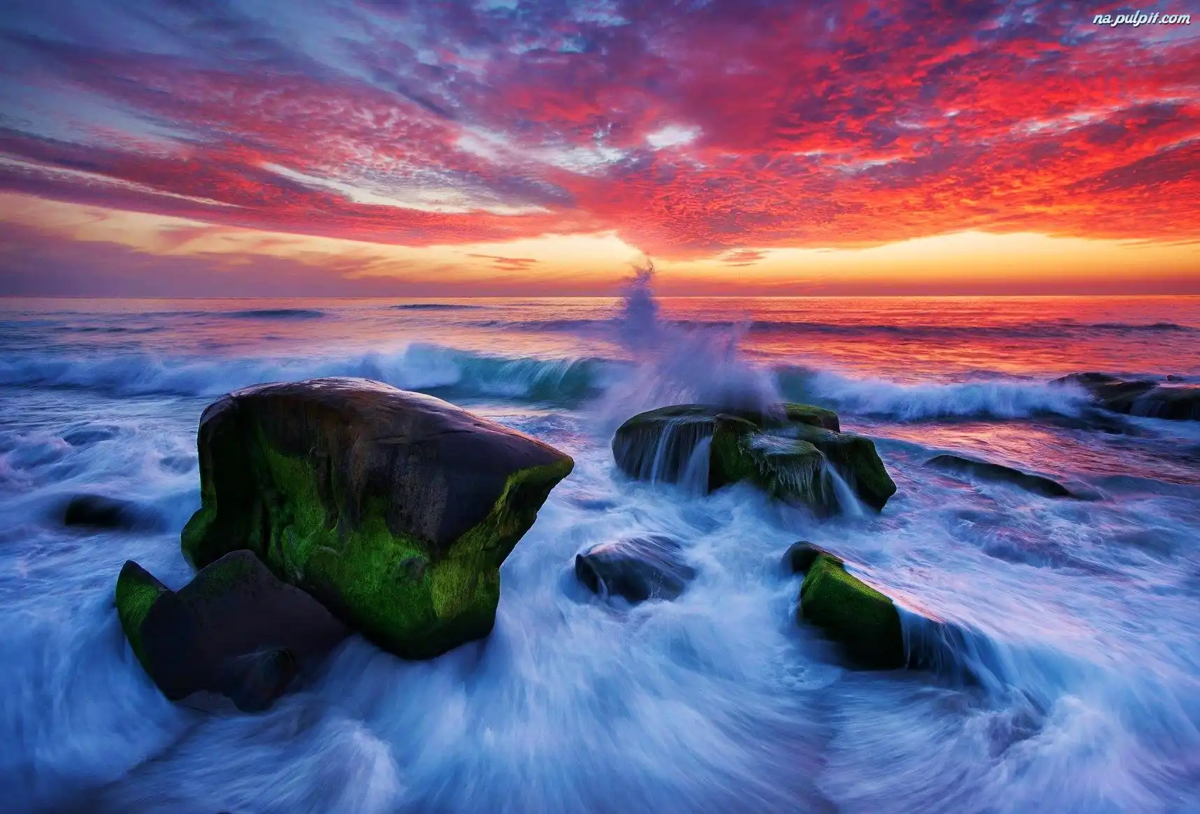 Kamienie, Słońca, Zachód, Morze Na Pulpit