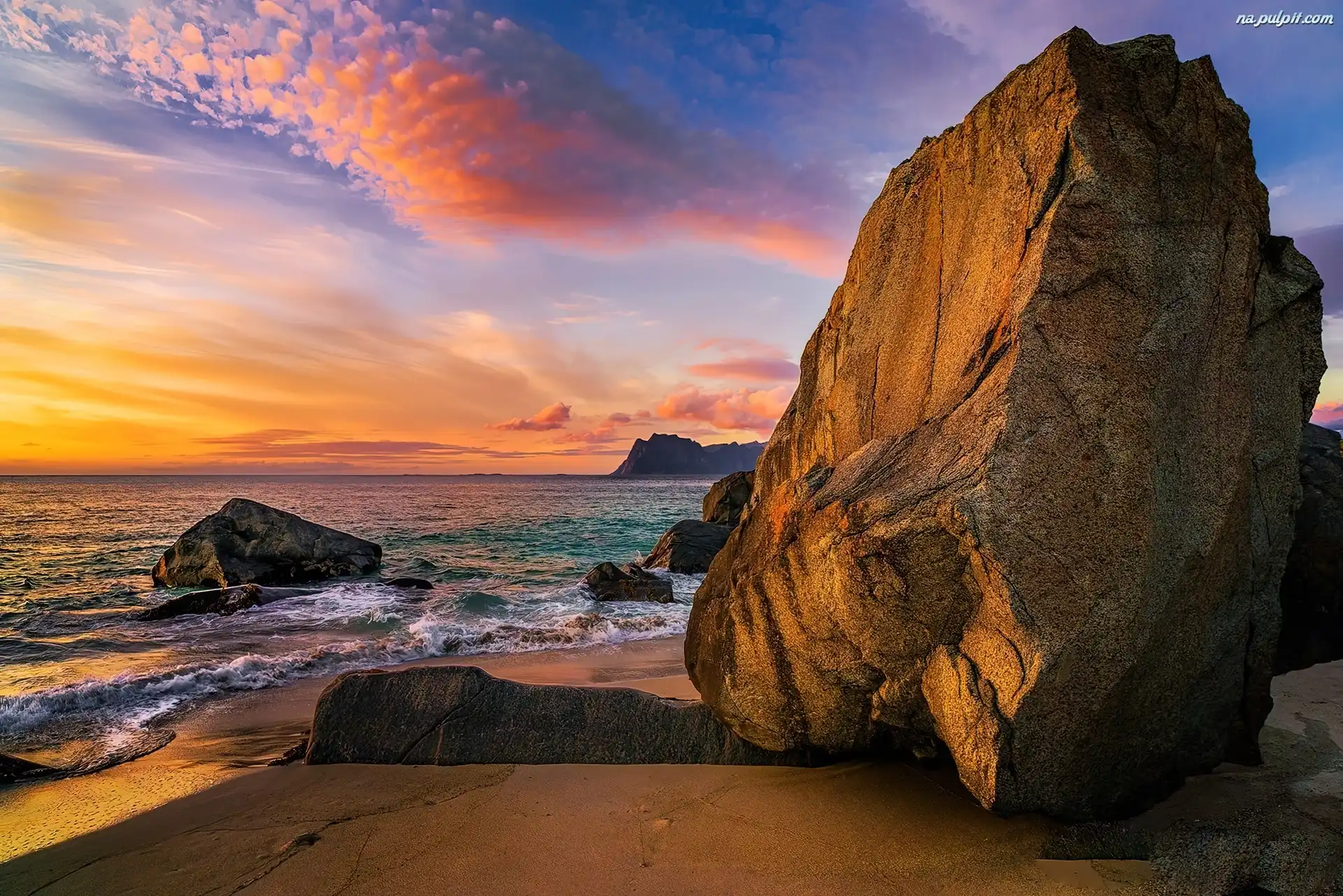 Kamienie, Skała, Słońca, Zachód, Morze Na Pulpit