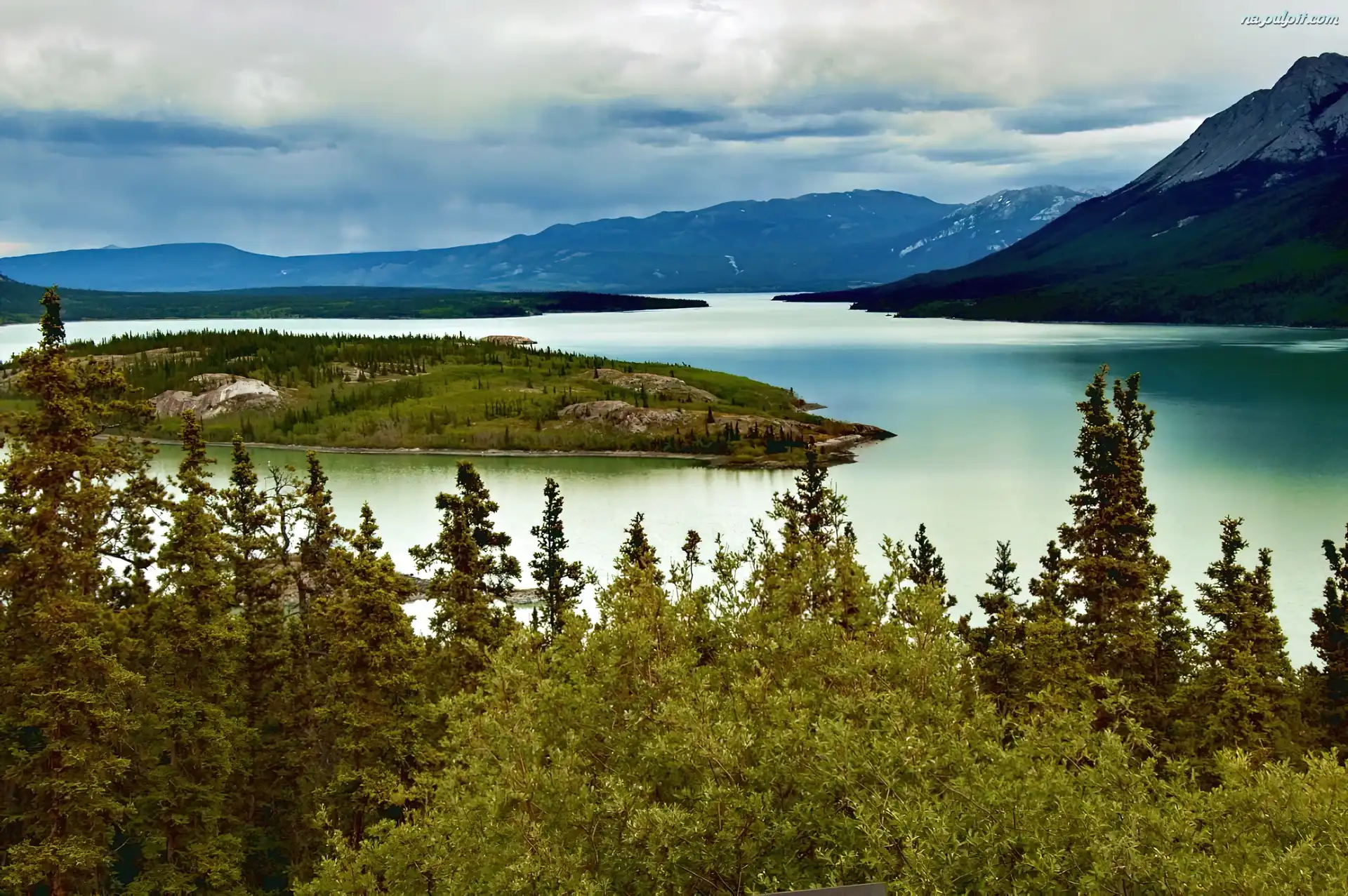 Kanada, Góry, Drzewa, Rzeka, Yukon