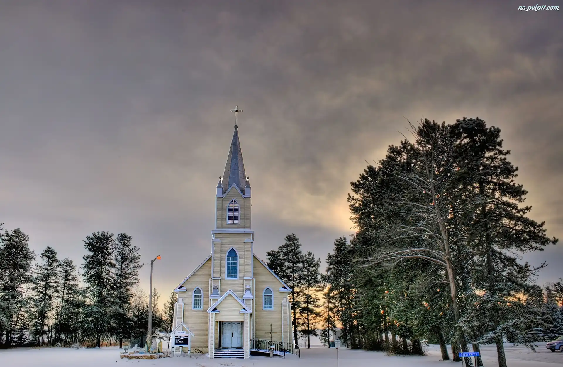 Kanada, Drzewa, Kościółek, Zima, Alberta Na Pulpit
