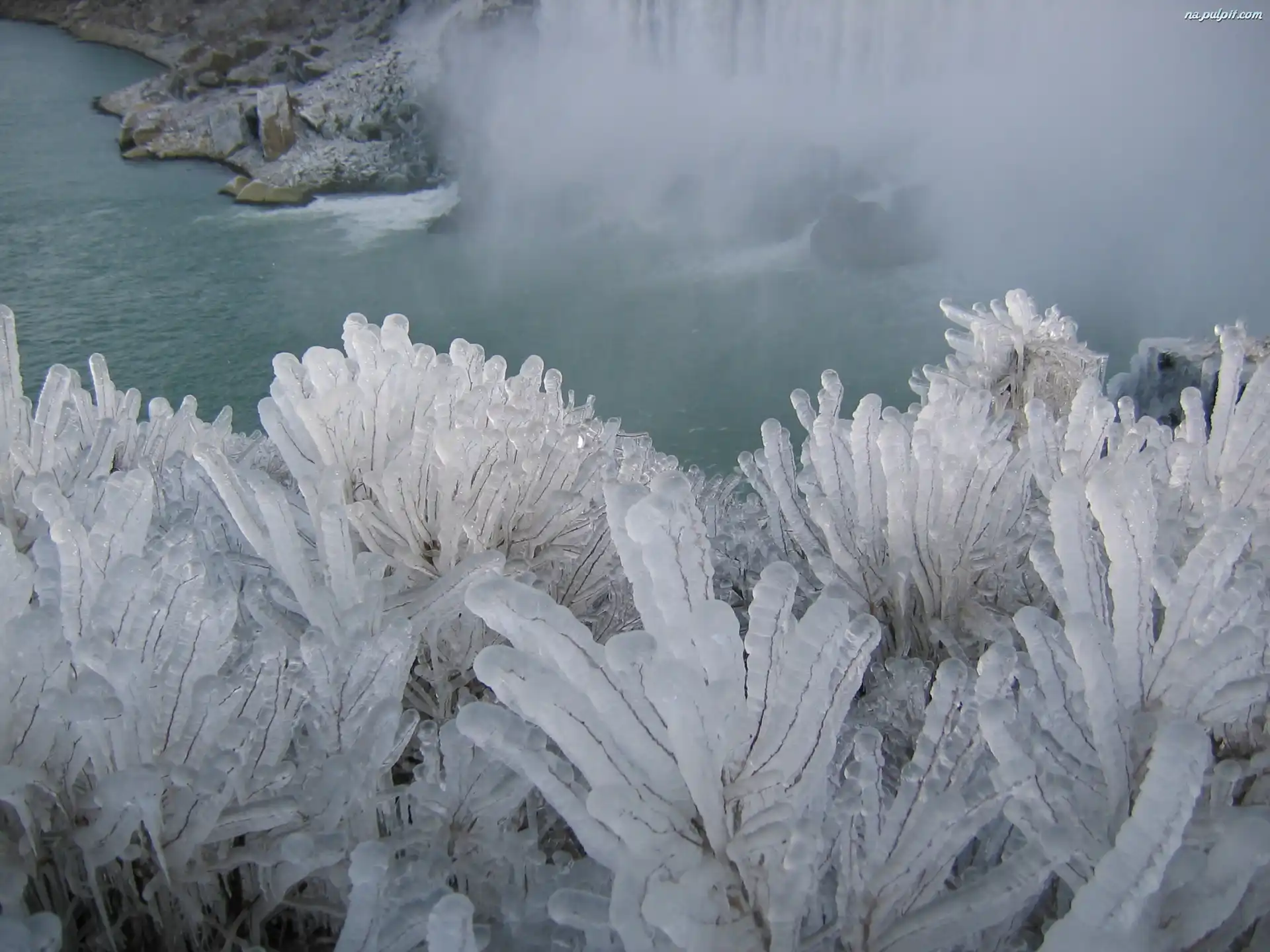 Kanada, Krzaczki, Oblodzone, Zima, Niagara Na Pulpit