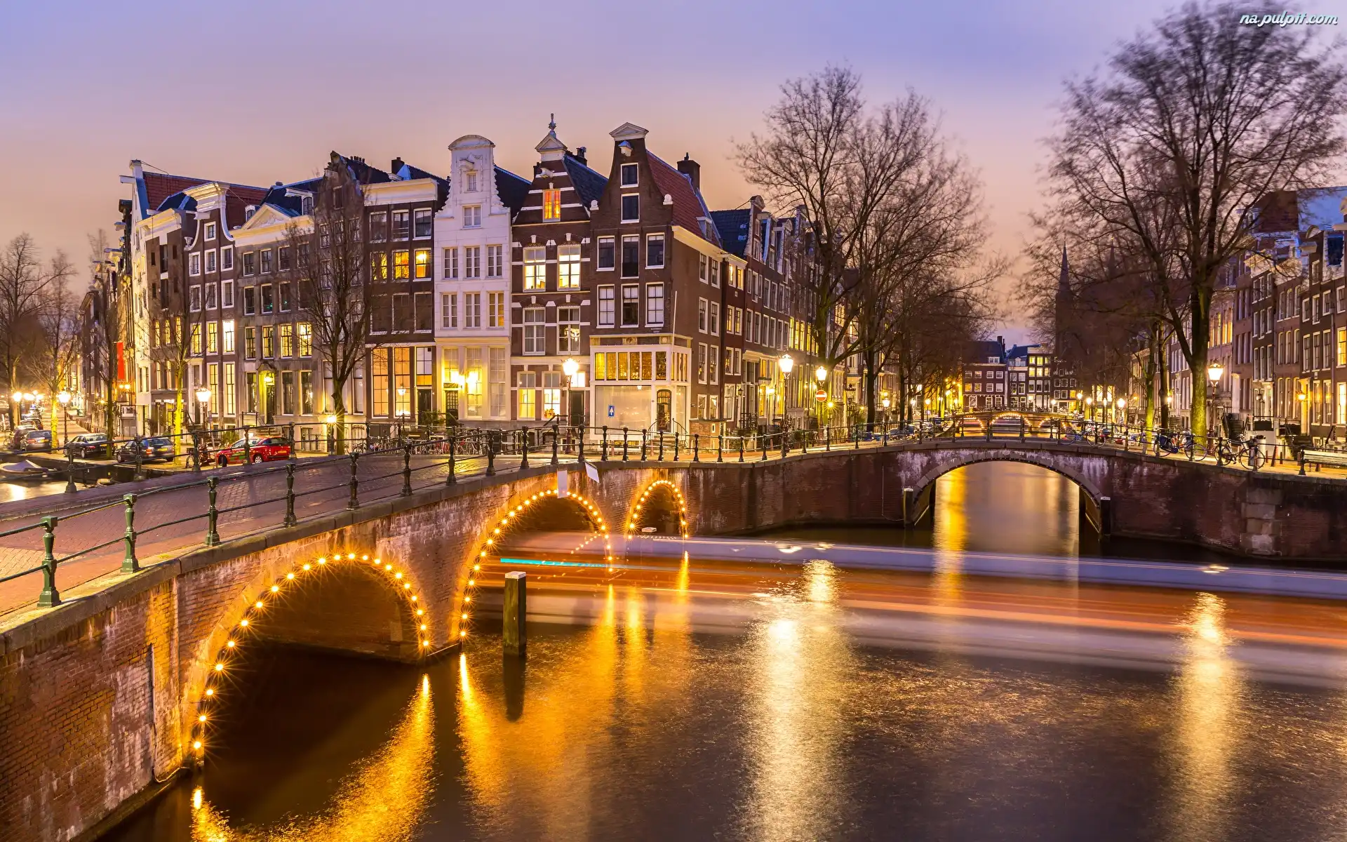 Holandia, Kanał, Amsterdam, Poranek, Mosty, Domy, Drzewa Na Pulpit