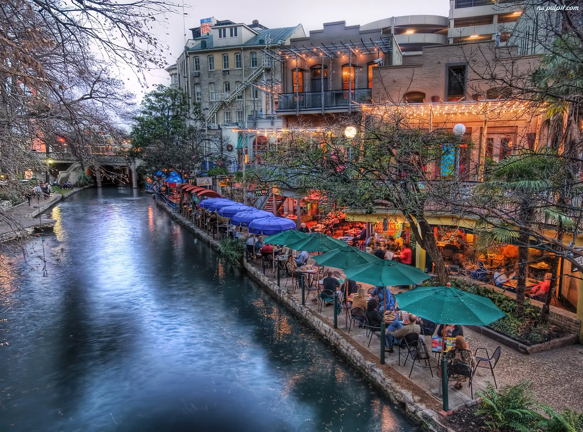 Kanał, Kawiarnia, Miasto, Parasole Na Pulpit