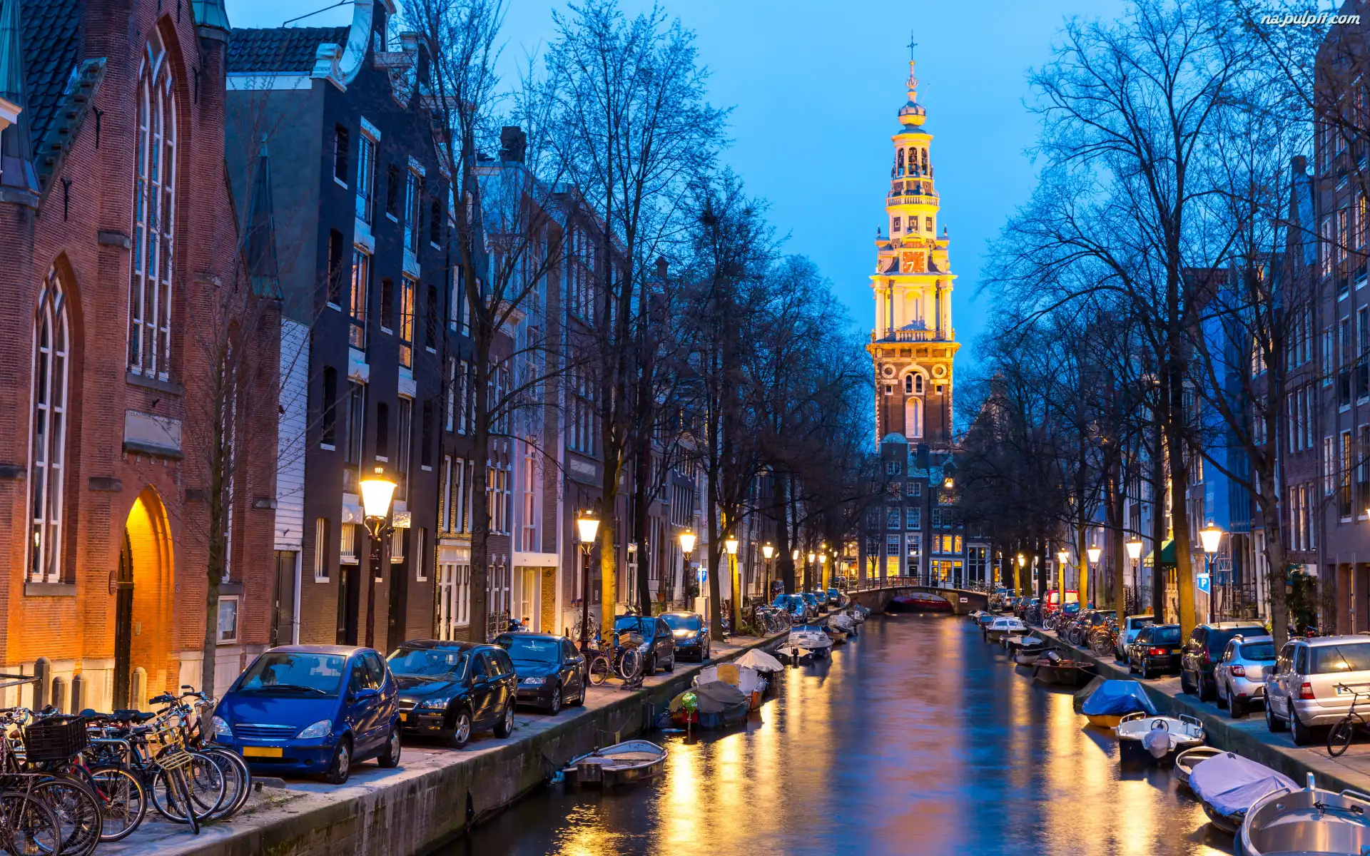 Holandia, Kanał, Amsterdam, Kościół Zuiderkerk, Wieża, Domy, Most Na Pulpit