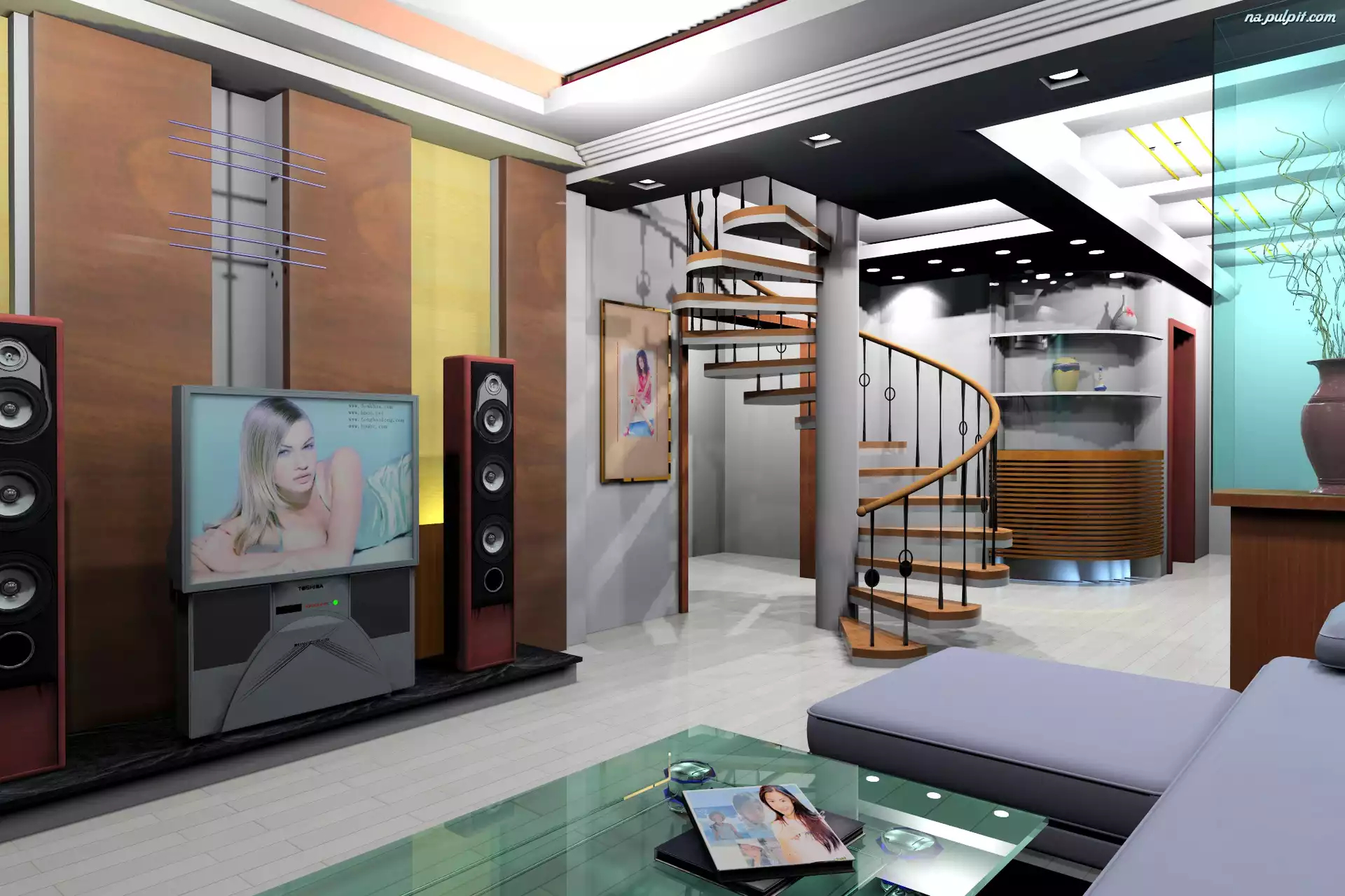 Kanapa, Domowe, Schody, Stolik, Pokój, Kino