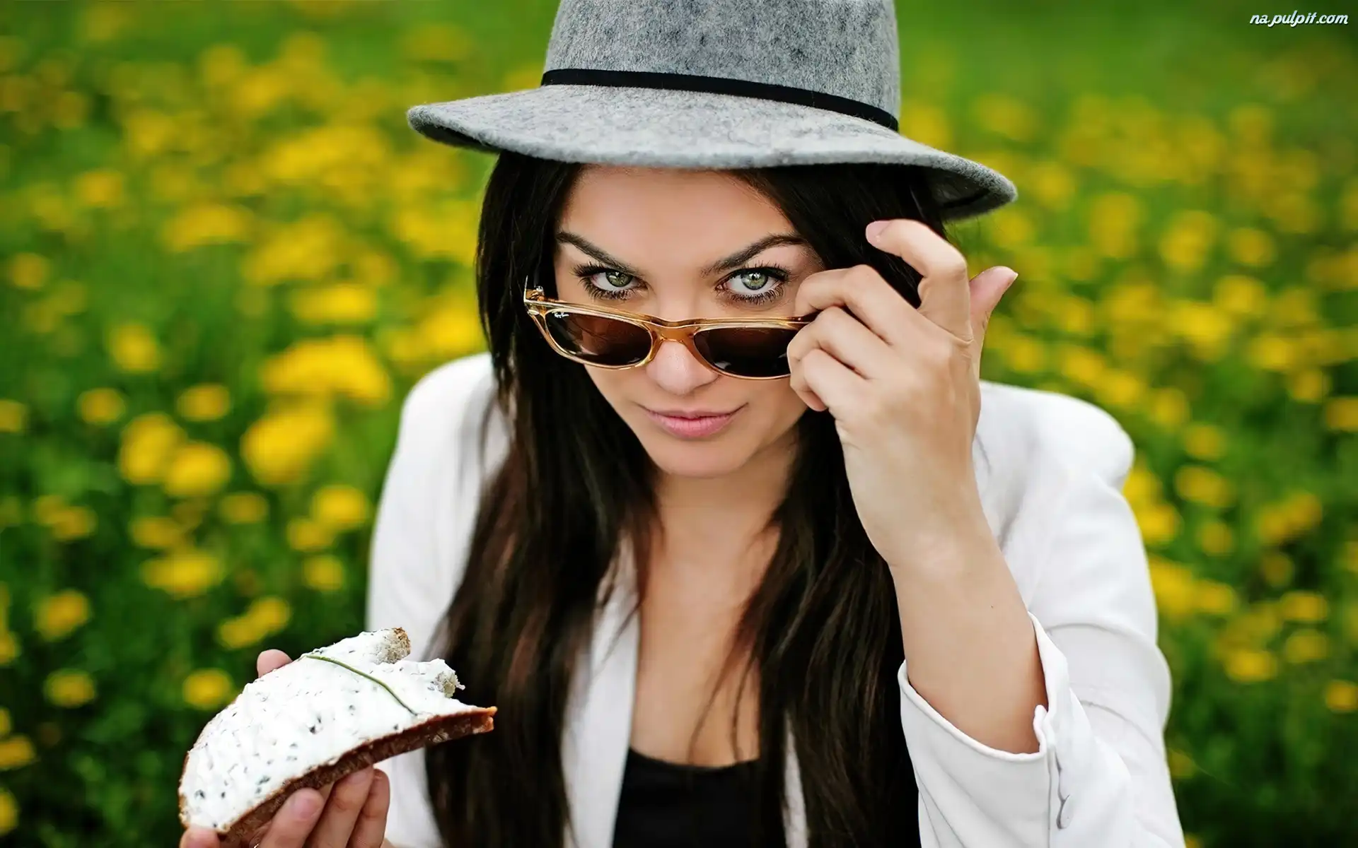 Kanapka, Ciemne, Kapelusz, Kobieta, Okulary