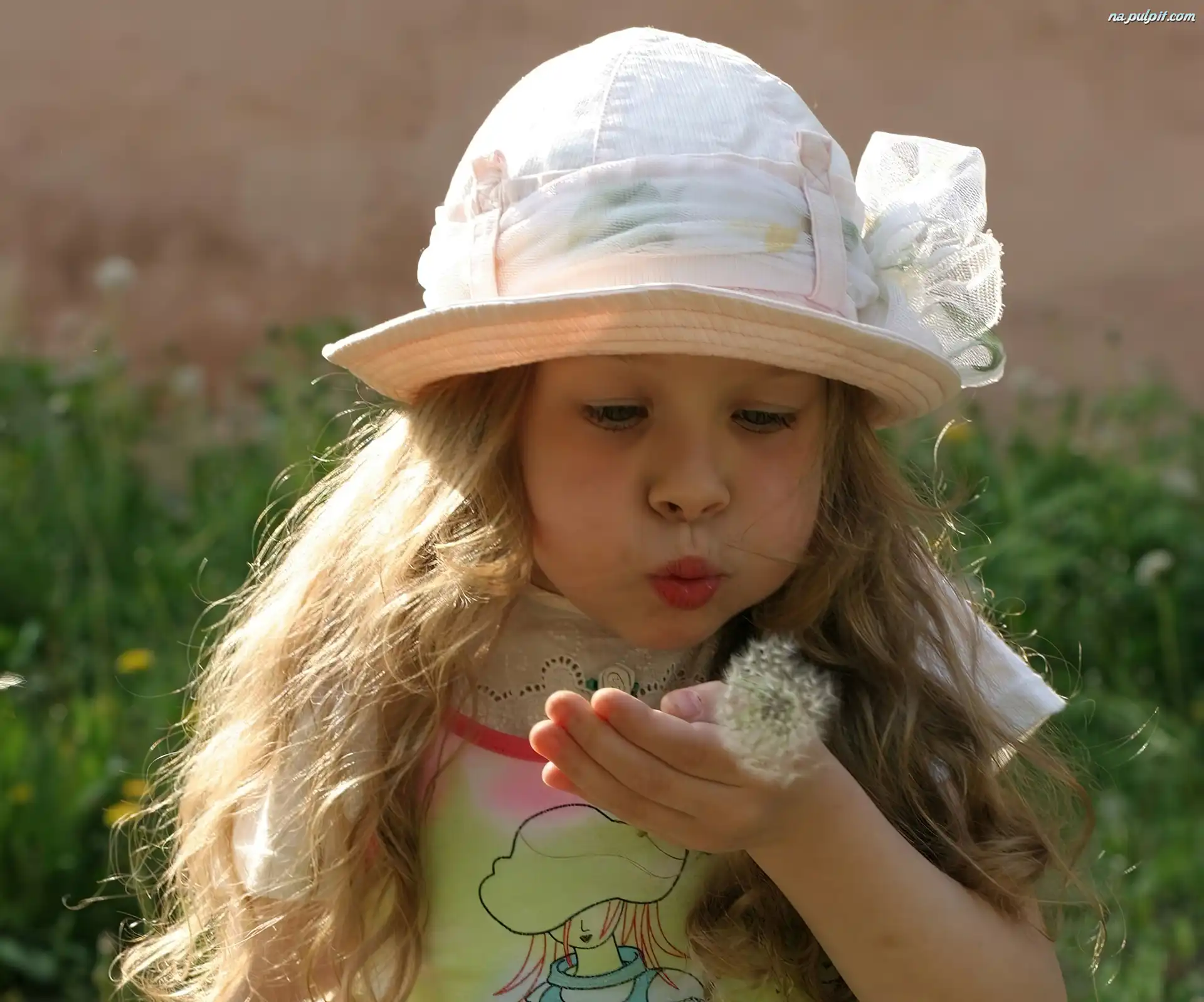 Kapelusik, Dmuchawiec, Łąka, Dziewczynka, Zabawa