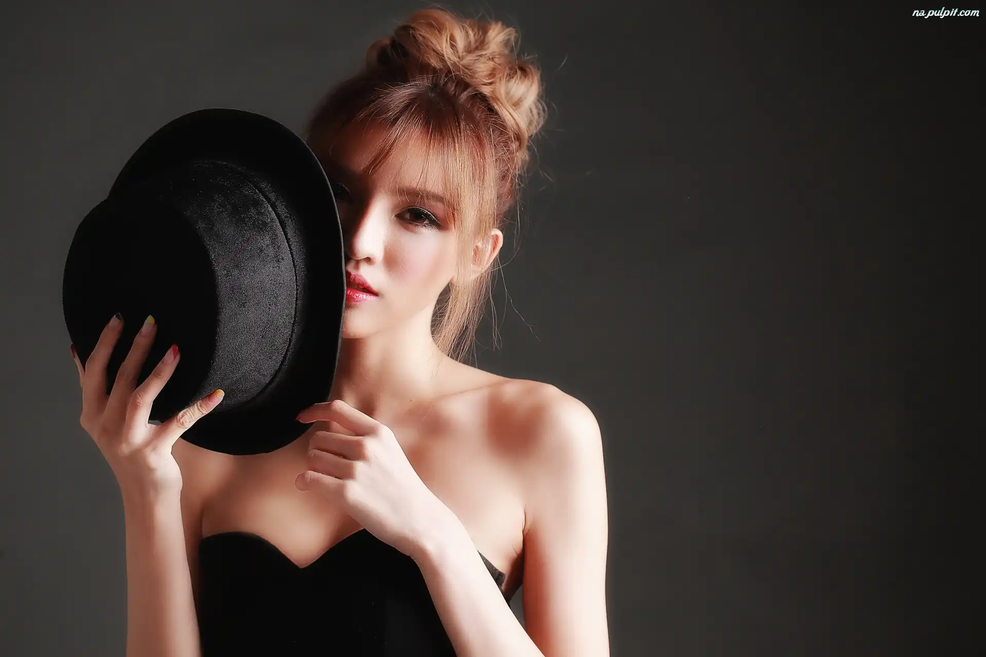 Kapelusz, Czarna, Kobieta, Sukienka Na Pulpit