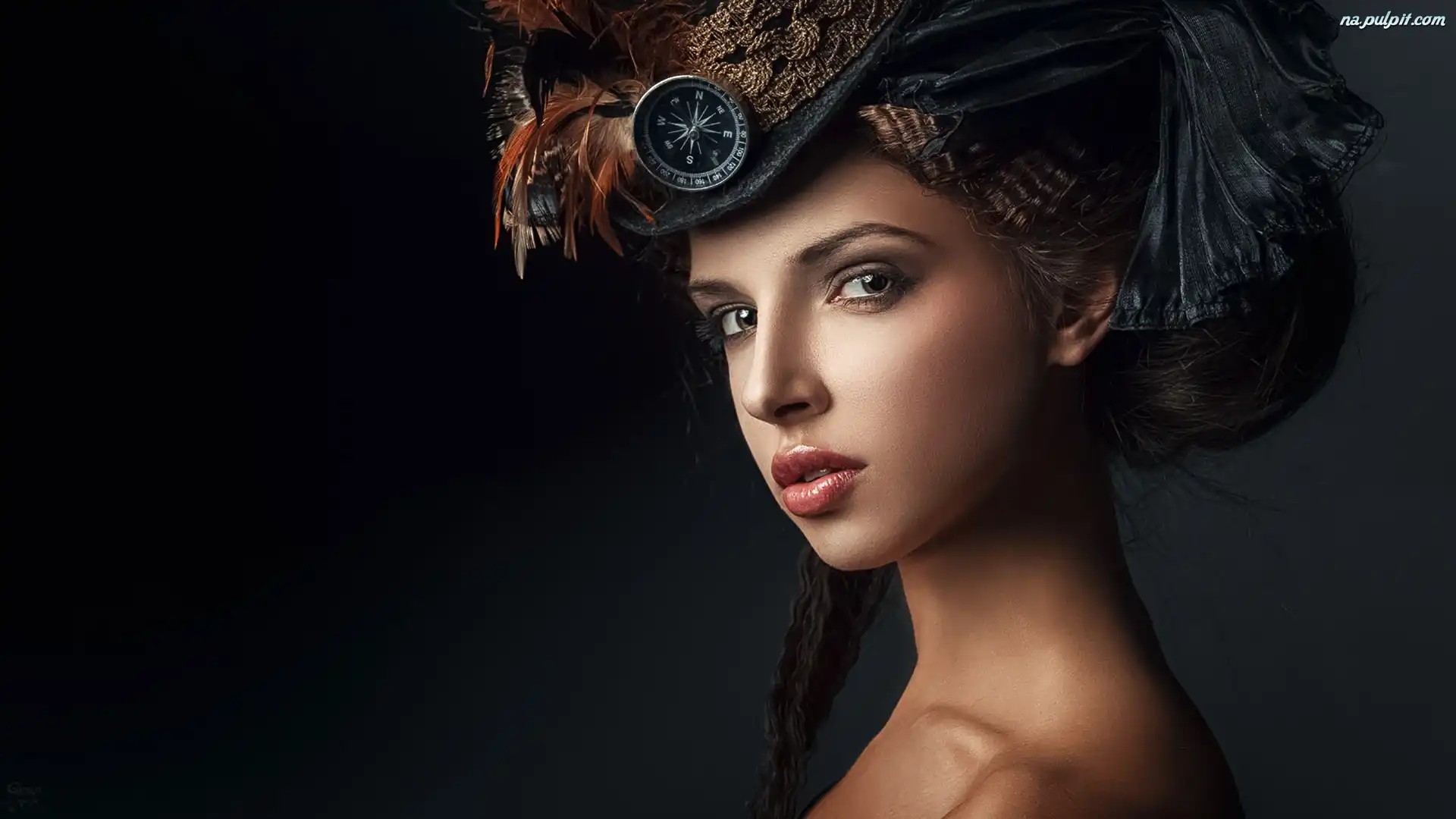 Kapelusz, Spojrzenie, Kobieta, Makijaż Na Pulpit