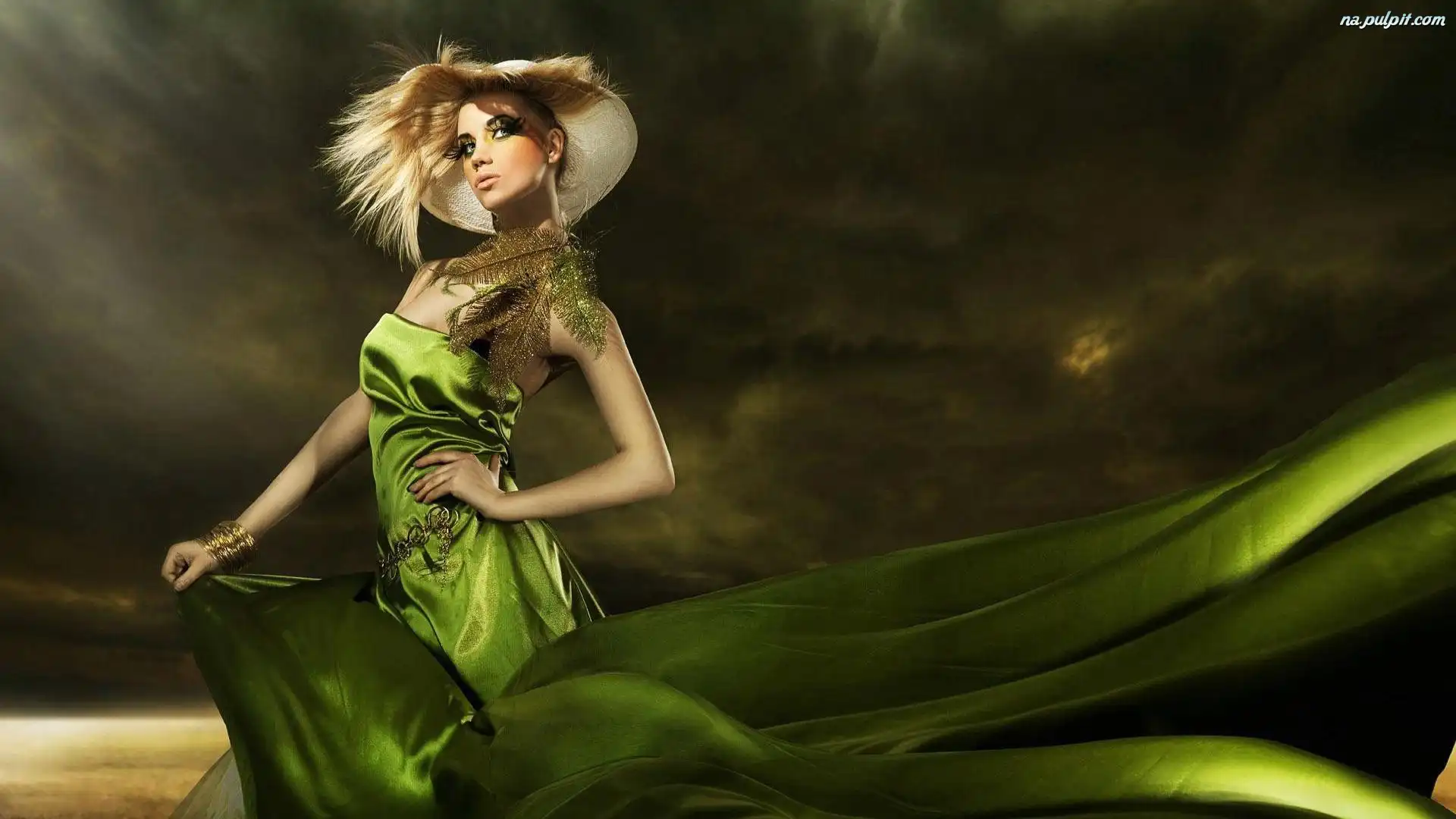 Kapelusz, Zielona, Kobieta, Suknia Na Pulpit