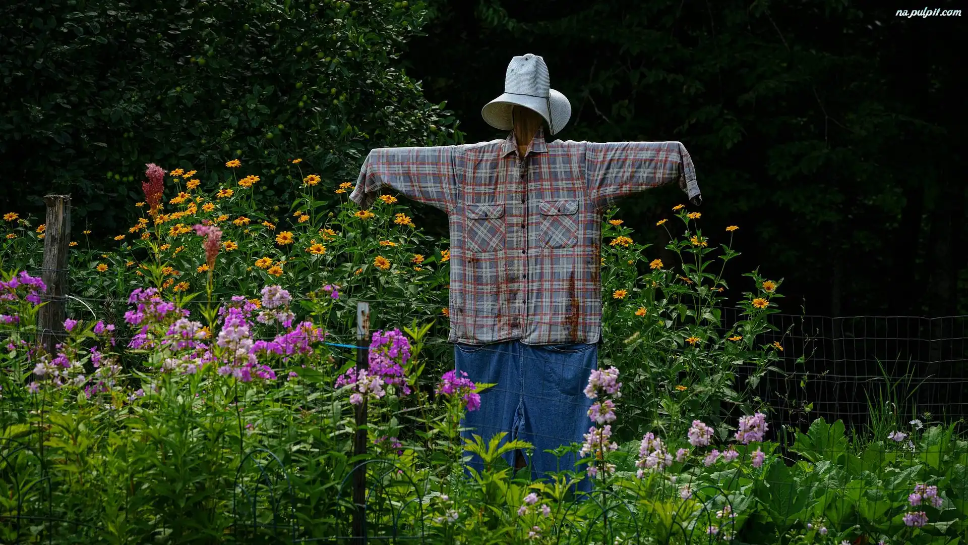Kwiaty, Kapelusz, Spodnie, Strach na wróble, Ogród, Koszula Na Pulpit