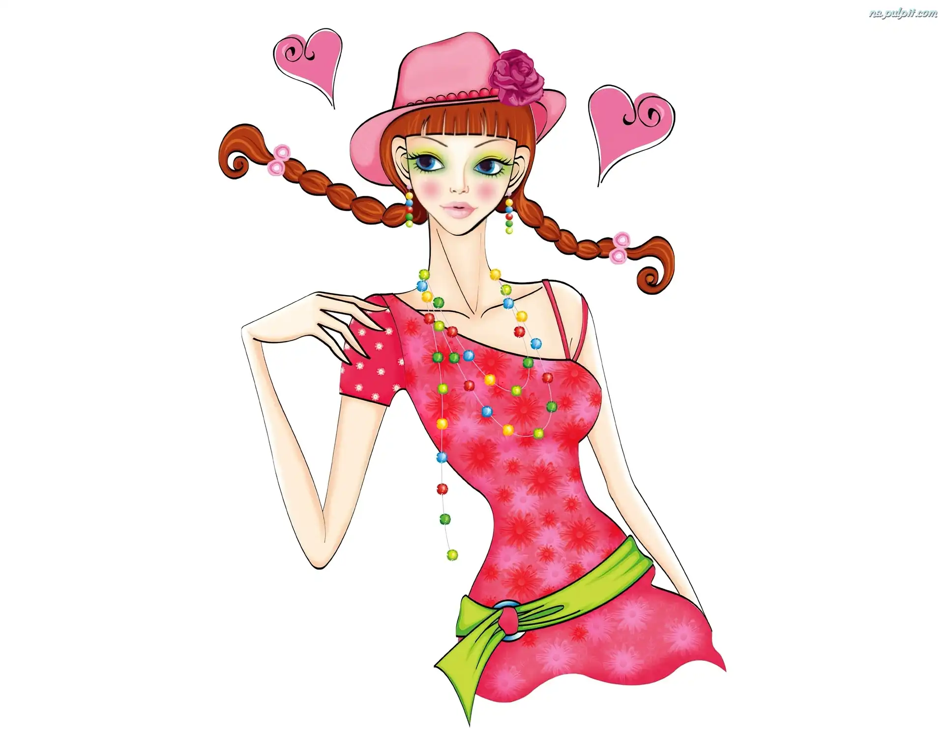 Kapelusz, Kobieta, Młoda, Warkoczyki Na Pulpit