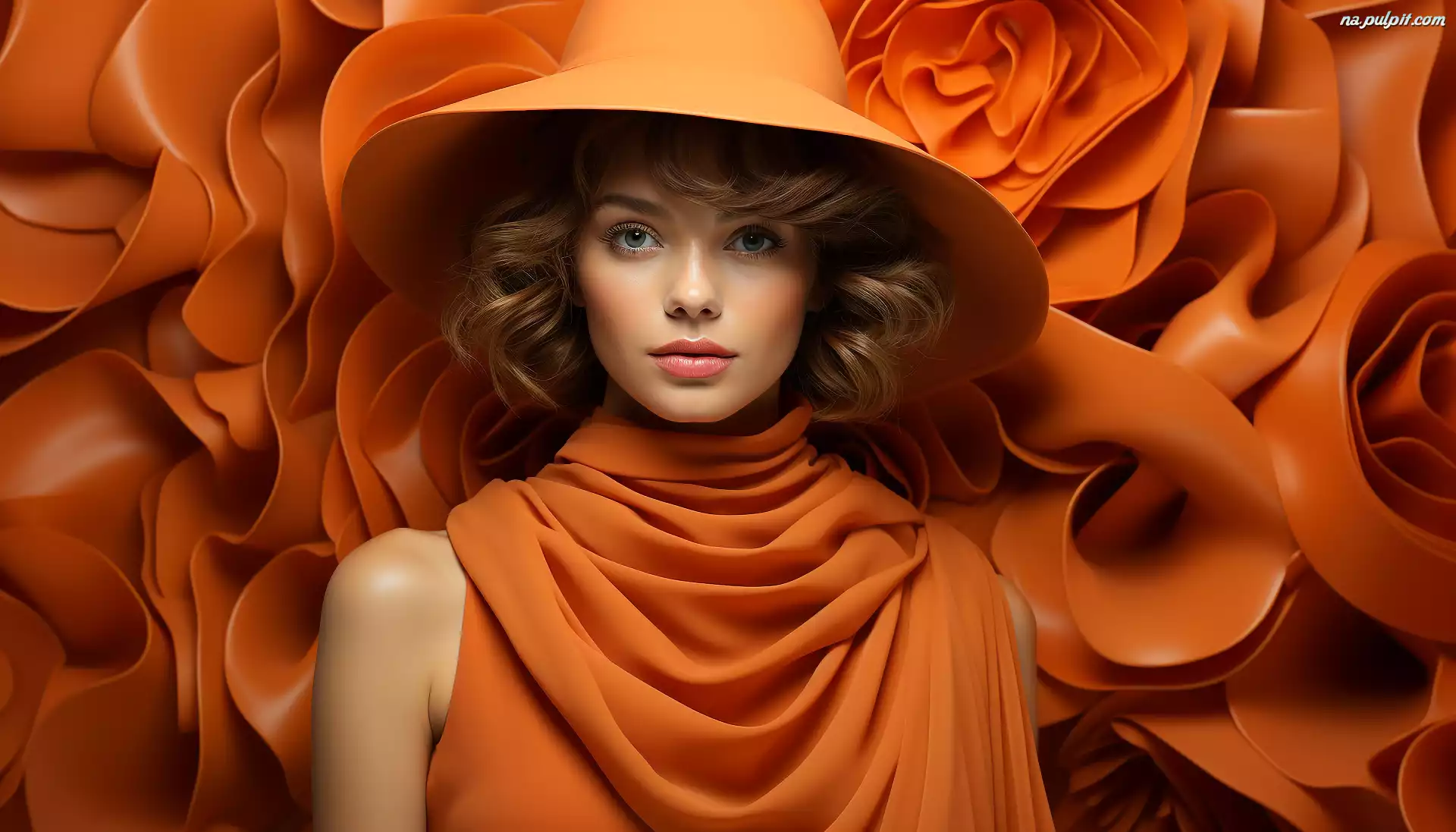 Sukienka, Pomatańczowy, Pomaranczowe, Kobieta, Grafika, Tło, Blondynka, Kapelusz Na Pulpit