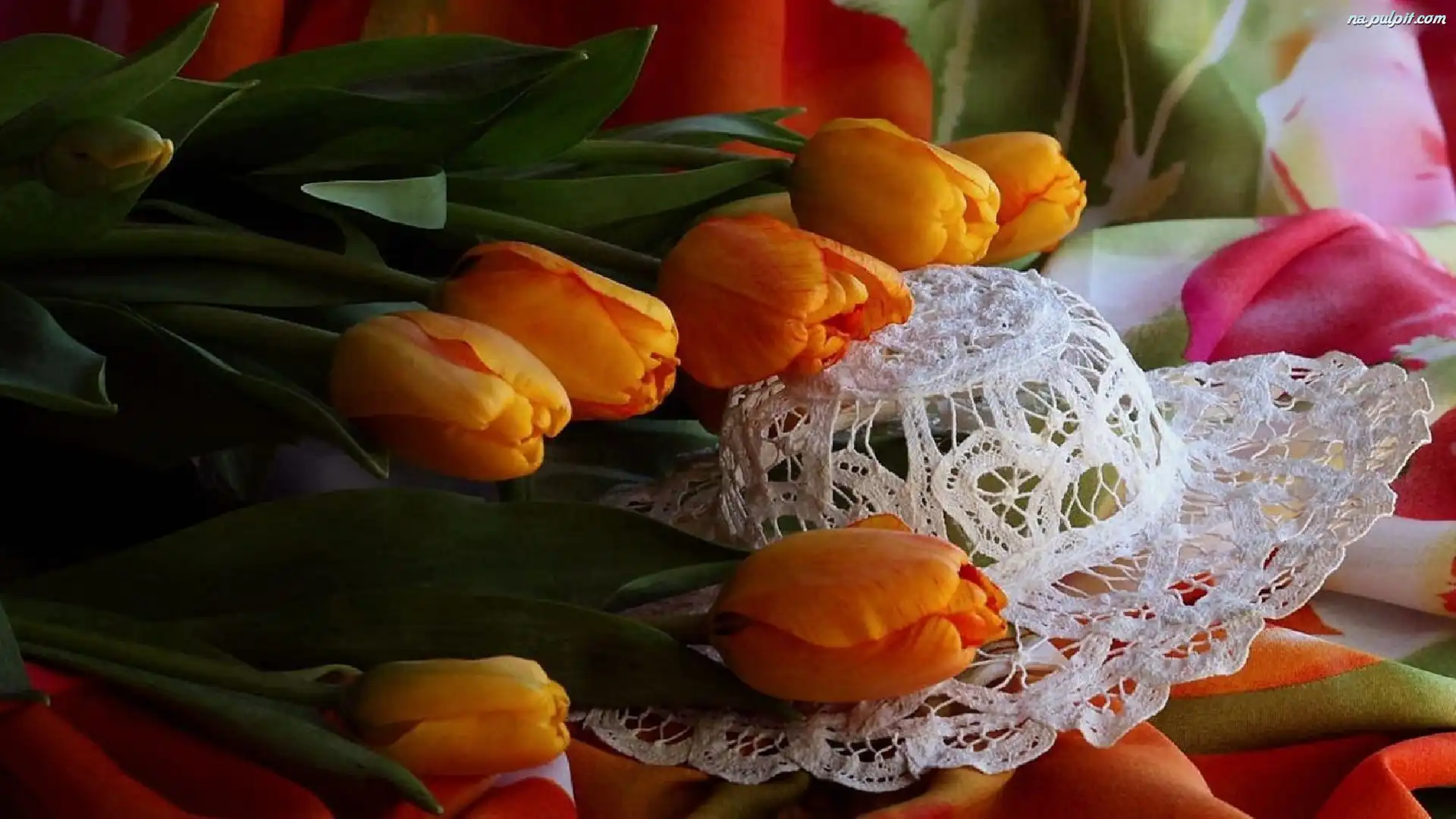 Kapelusz, Tulipany, Pomarańczowe, Koronkowy Na Pulpit