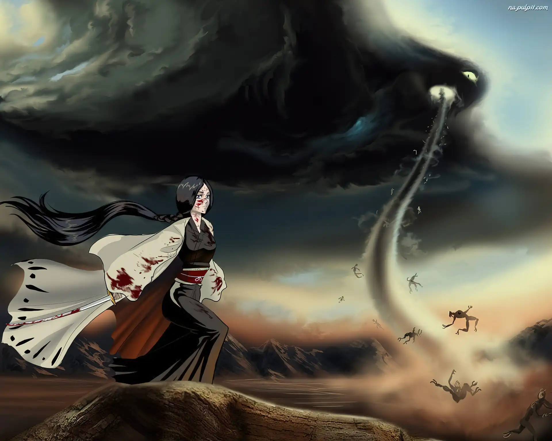napis, drzewa, dziewczyna, Bleach, sukienka okno, katana, kimono, Bleach, kobieta Włosy, Ichigo, Maska Oczy, Grimmjow, Uśmiech Hollow, Bleach pluszak, Bleach, miś Bleach, Yammy Rialgo Grimmjow, Walka, Kurosaki Ichigo, Poszukiwany, Kurosaki księżyc, miecz, Bleach, facet Kurosaki, Ulquiorra, Walka, Ostateczna, Vs Walka, Ulquirra, Kurosaki Arrancar, Potwór, Espada Przytulanka, Misiek, Kon