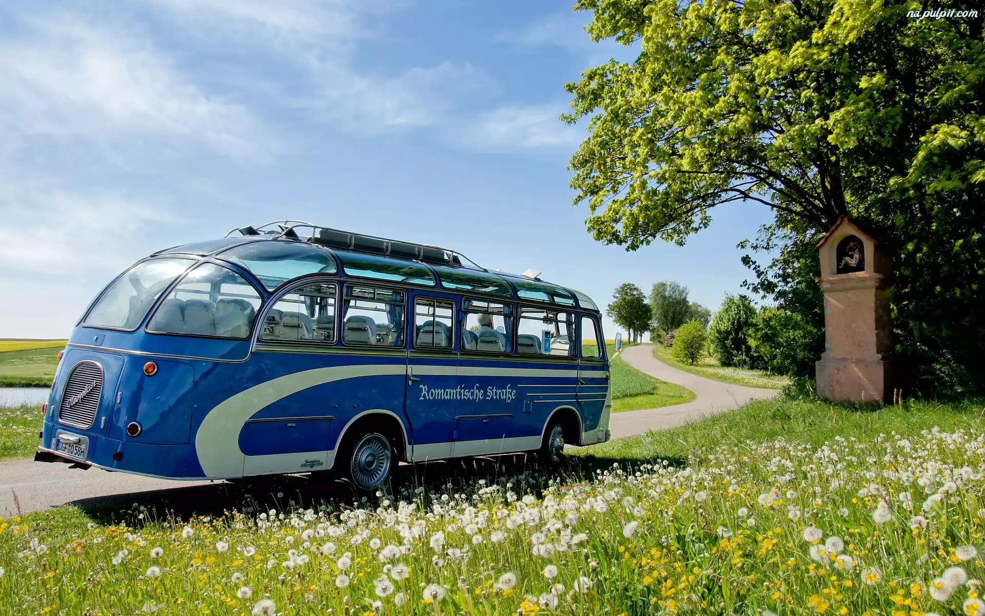 Kapliczka, Droga, Autobus, Łąka Na Pulpit