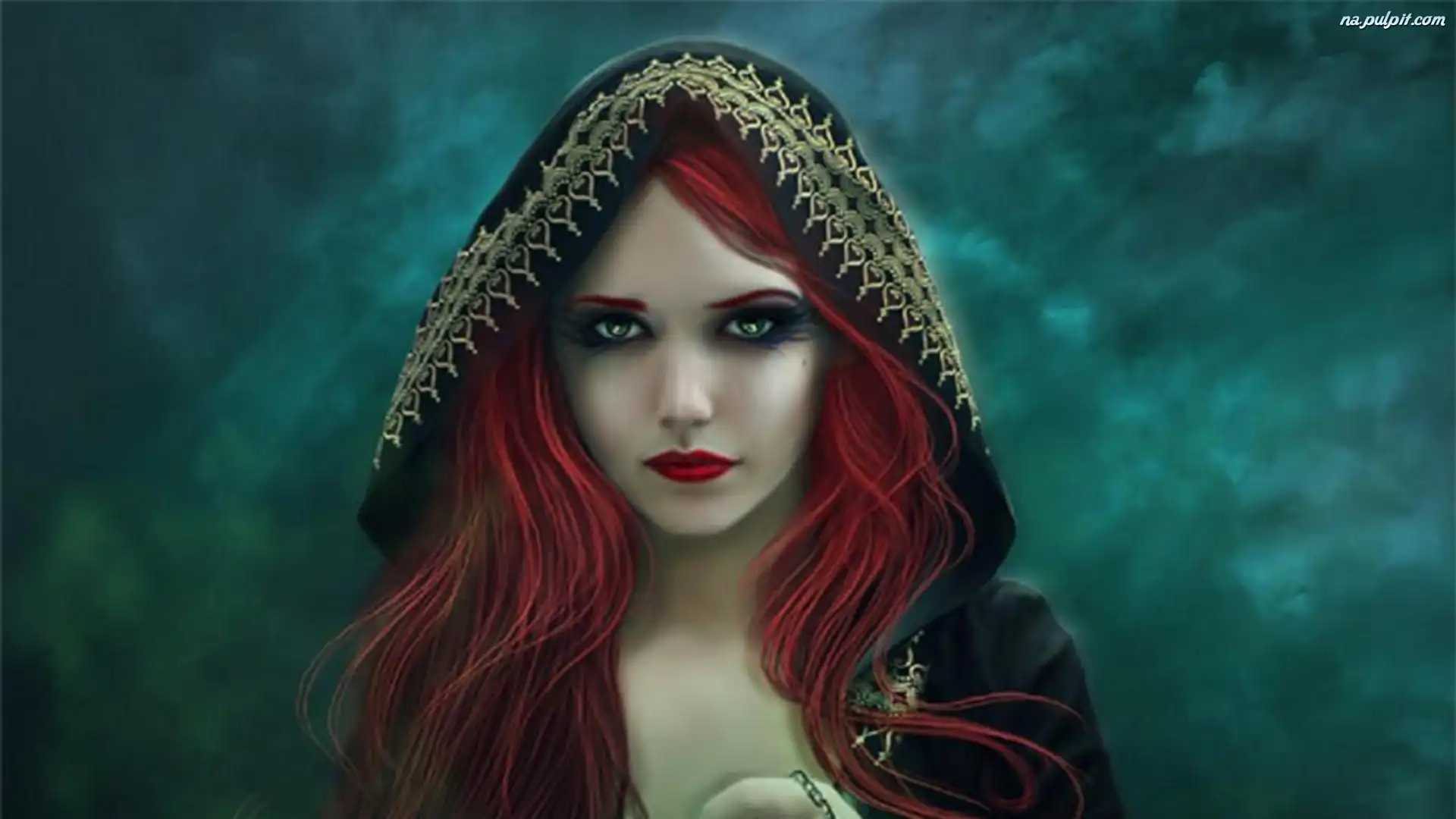 Kaptur, Czerwone, Dziewczyna, Włosy Na Pulpit