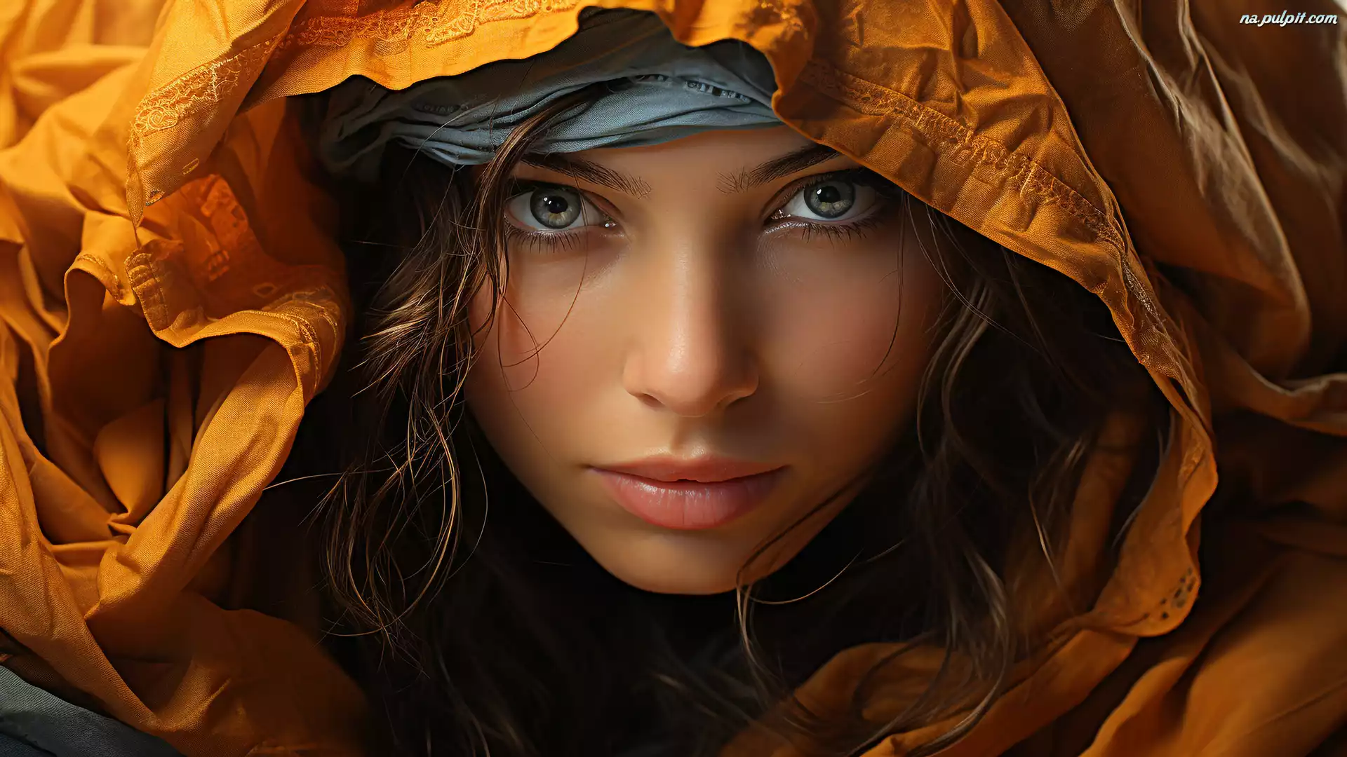 Kobieta, Spojrzenie, Pomarańczowy, Kaptur Na Pulpit