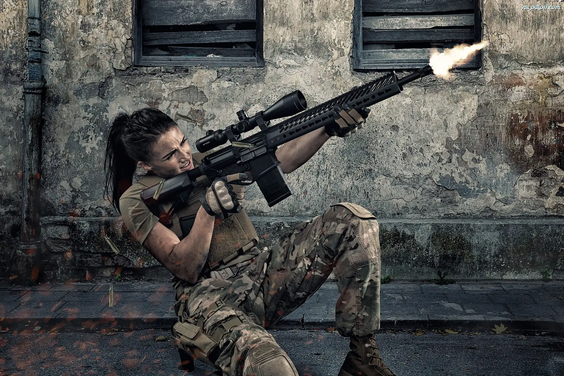 Karabin, Lauren Young, Kobieta, Żołnierz Na Pulpit