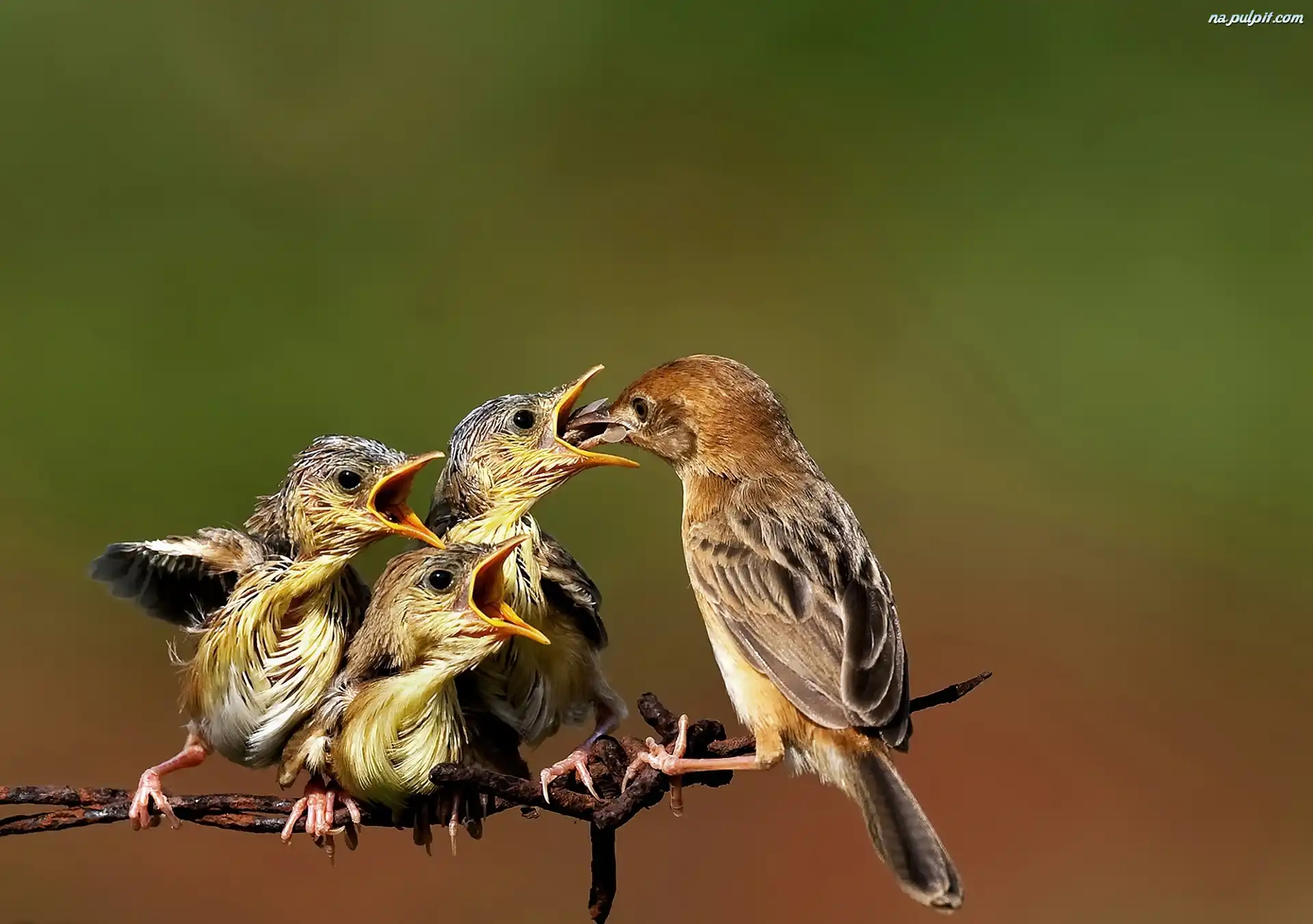Karmienie , Ptaszek, Mama, Małe Na Pulpit