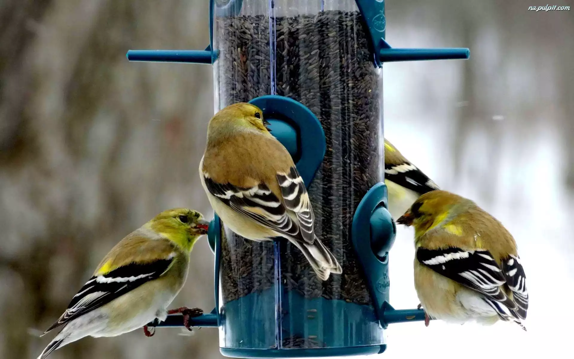 Szczygły amerykańskie, Ptaki, Karmnik Na Pulpit