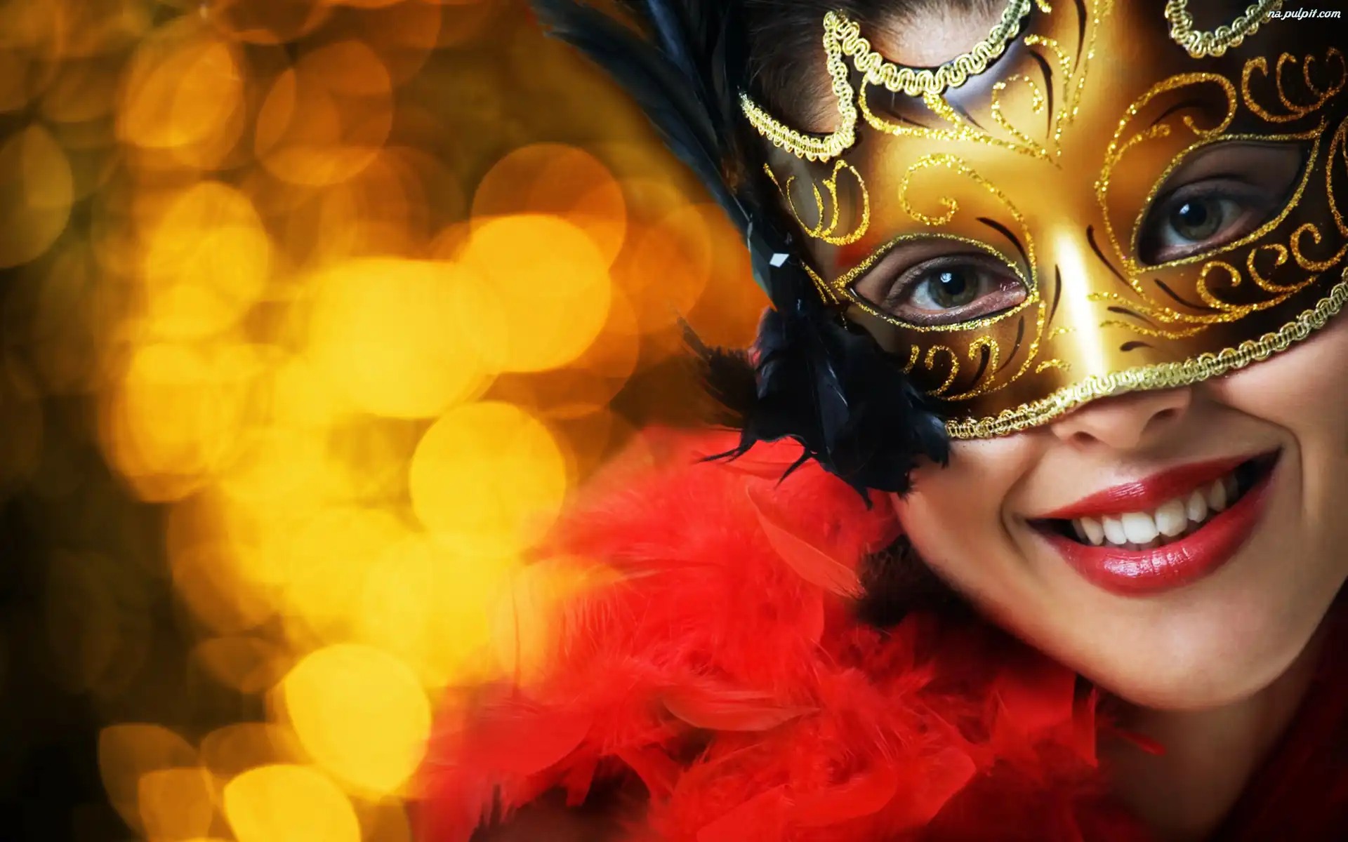 Karnawał, Kobieta, Uśmiechnięta, Maska Na Pulpit