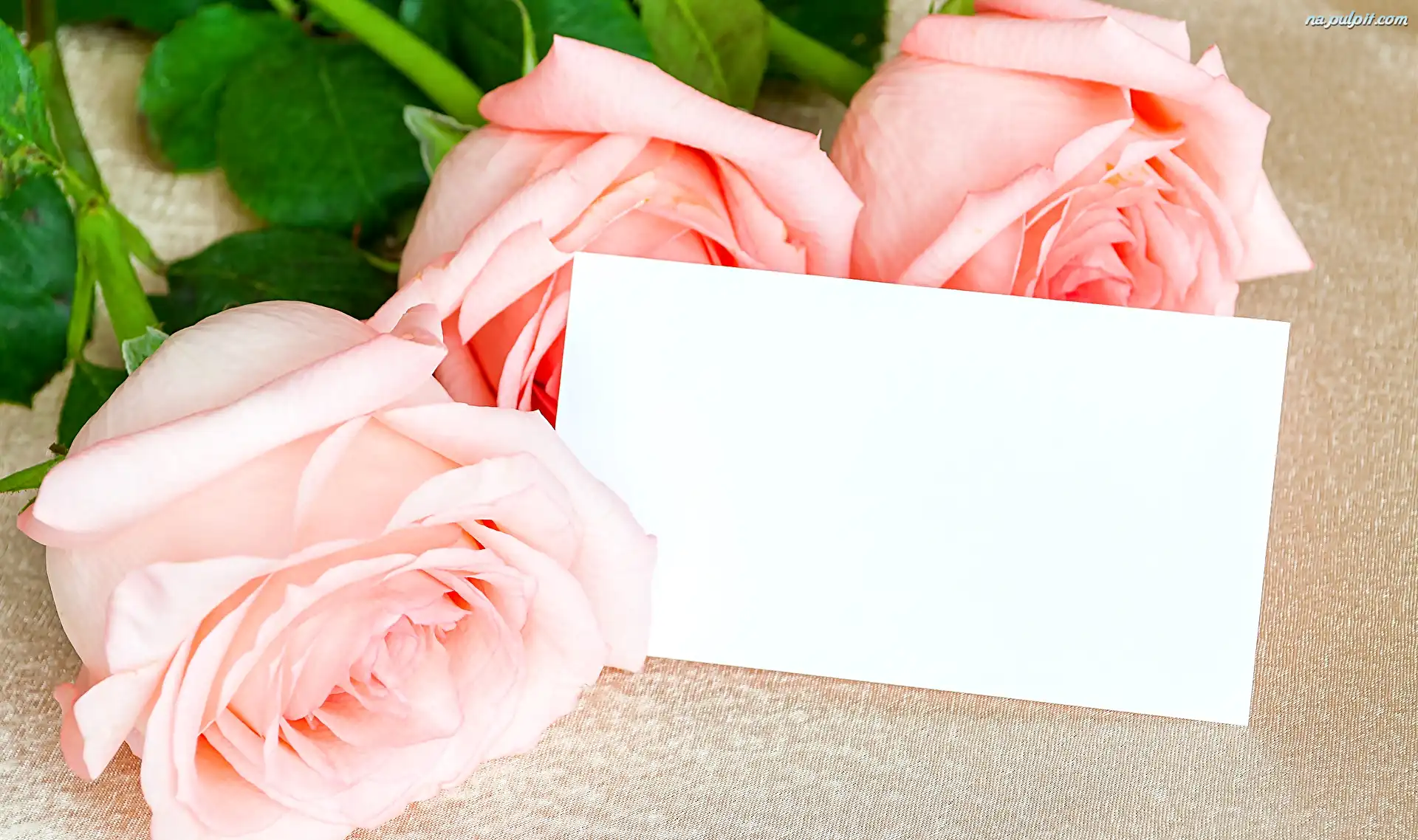 Kartka, Różowe, Róże, Trzy, Biała Na Pulpit