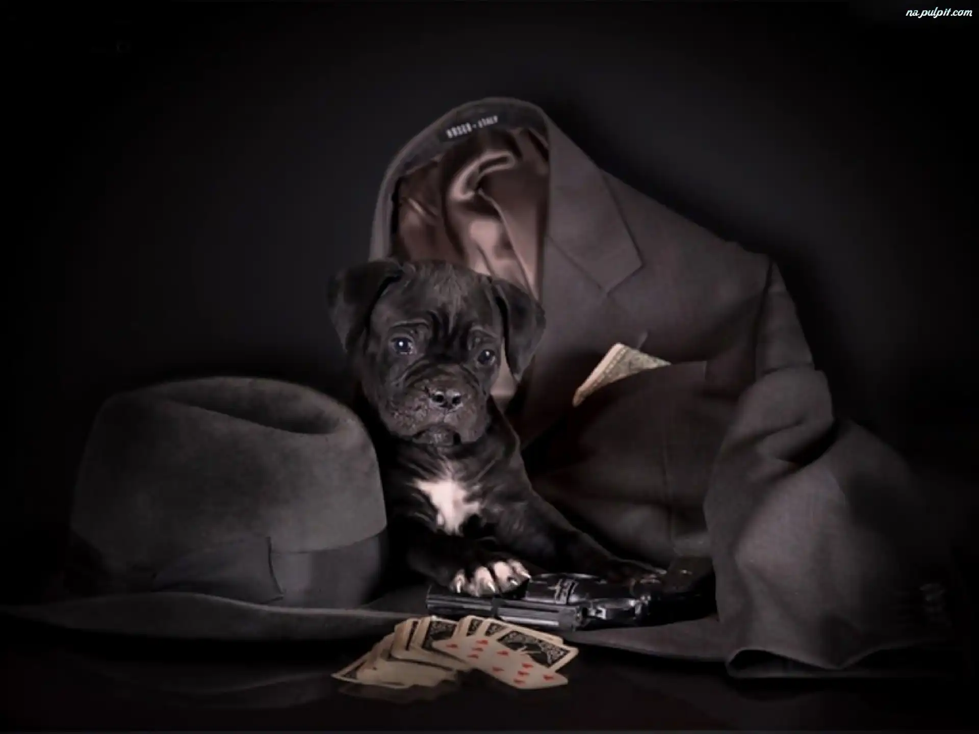 Karty, Marynarka, Kapelusz, Szczeniak, Pistolet