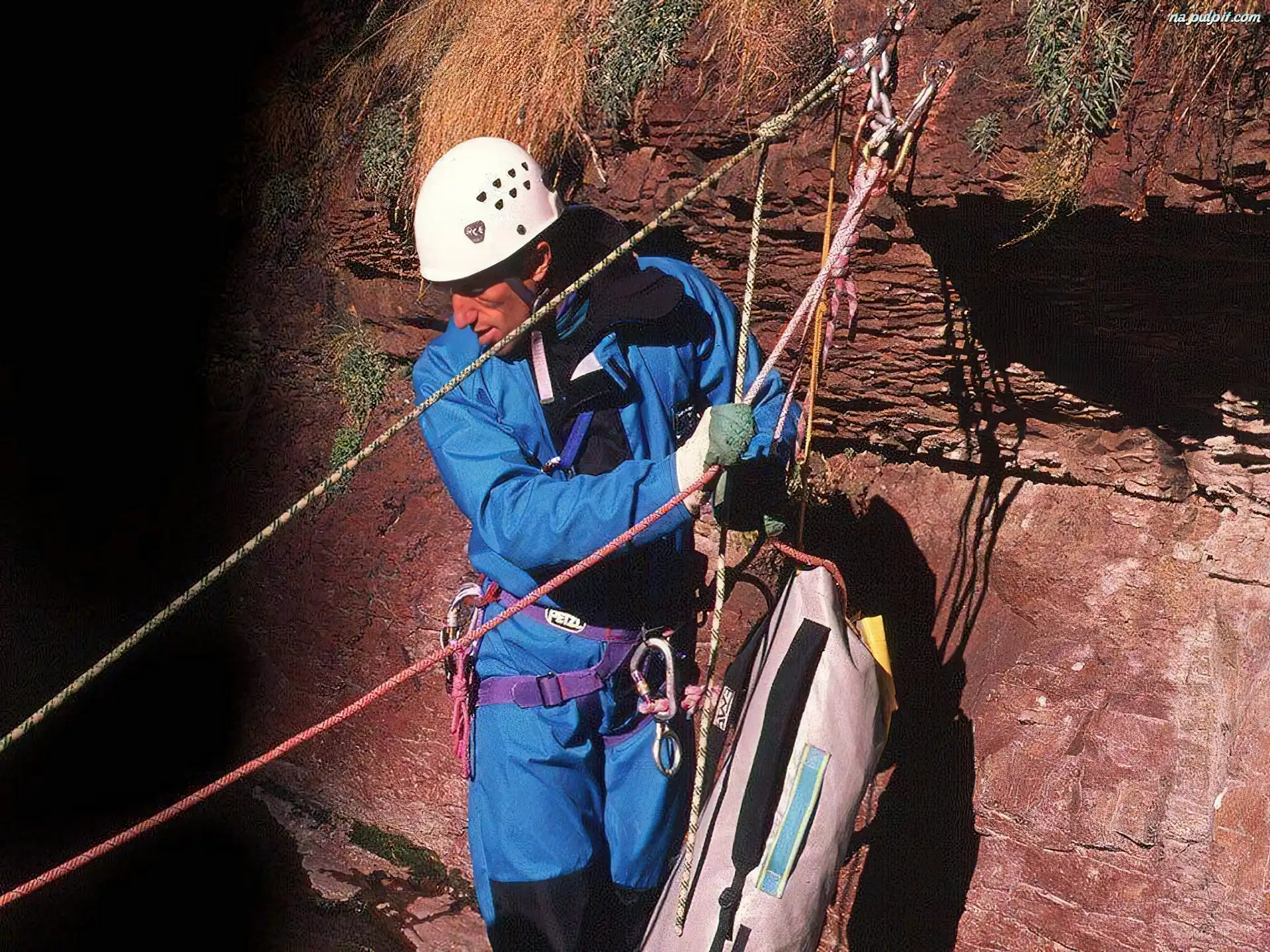 kask, liny , Rafting, wspinaczka Na Pulpit