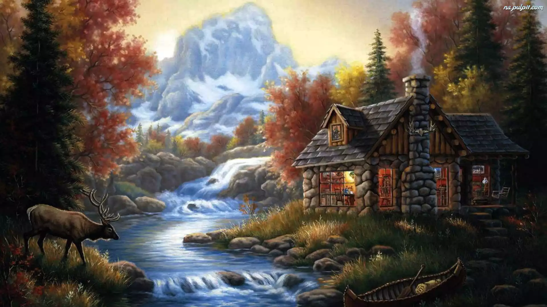 Kaskady, Góry, Kamienie, Wody, Domek, Drzewa Na Pulpit