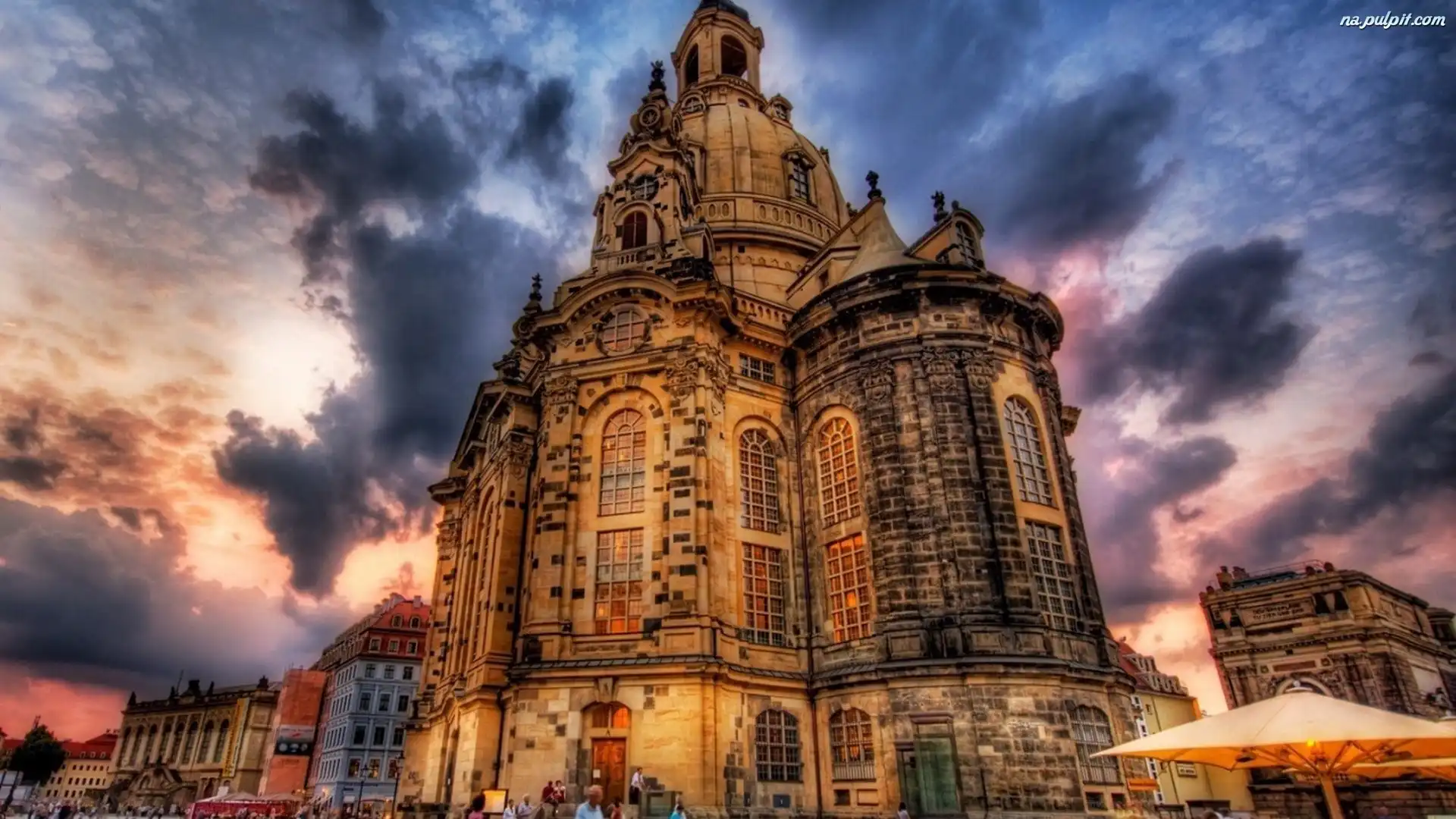 Katedra Świętej Trójcy, Drezno, Kościół, Promenada, Zabytki, Niemcy, Tarasy Brühla Drzewa, Woda, Cerkiew, Chmury Jesień, Most, Kościół, Rzeka Karpacz, Świątynia, Wang Wenecja, Bazylika Św. Marka
