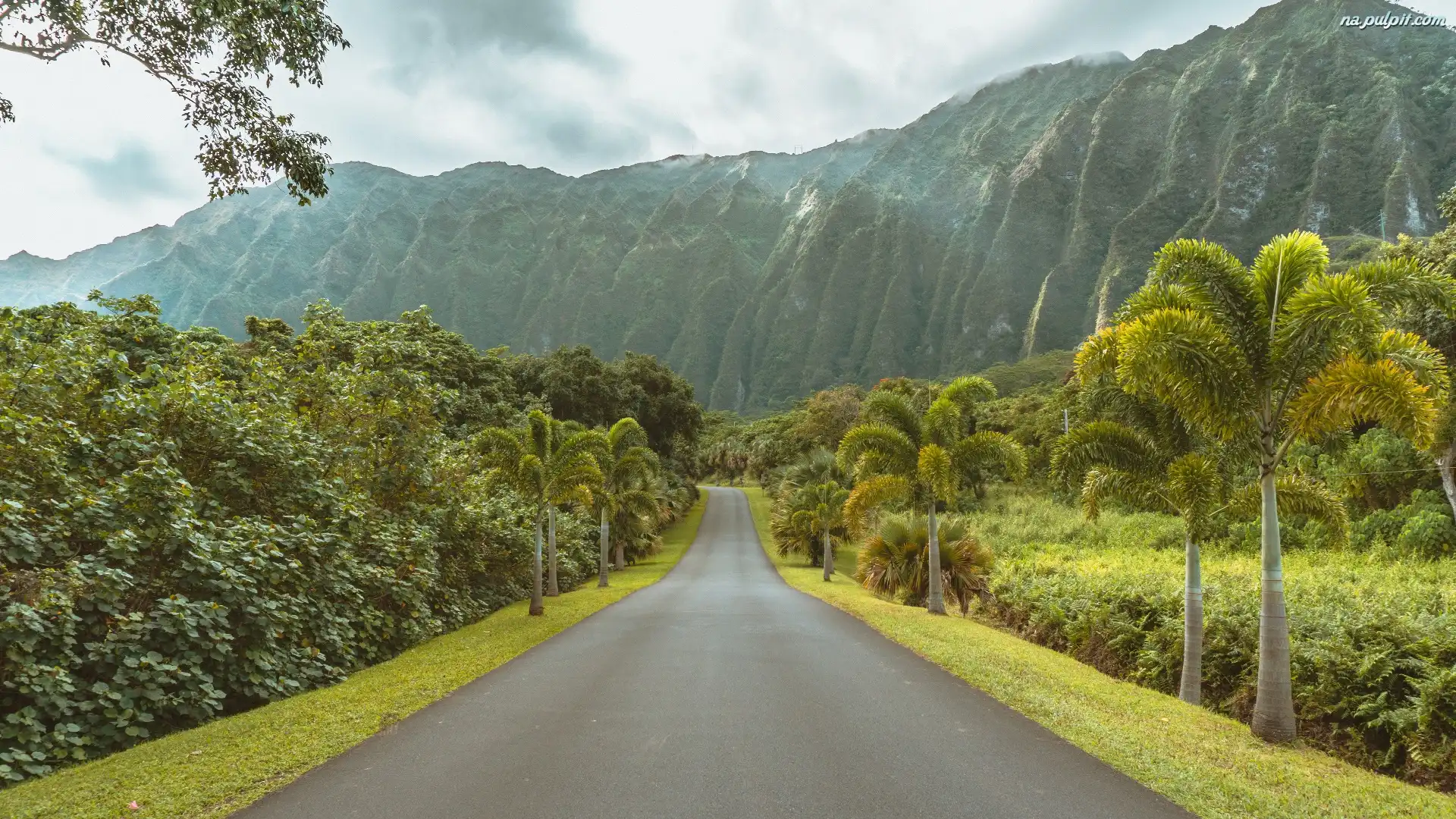 Stany Zjednoczone, Góry, Hawaje, Palmy, Drzewa, Droga, Wyspa Kauai Na Pulpit