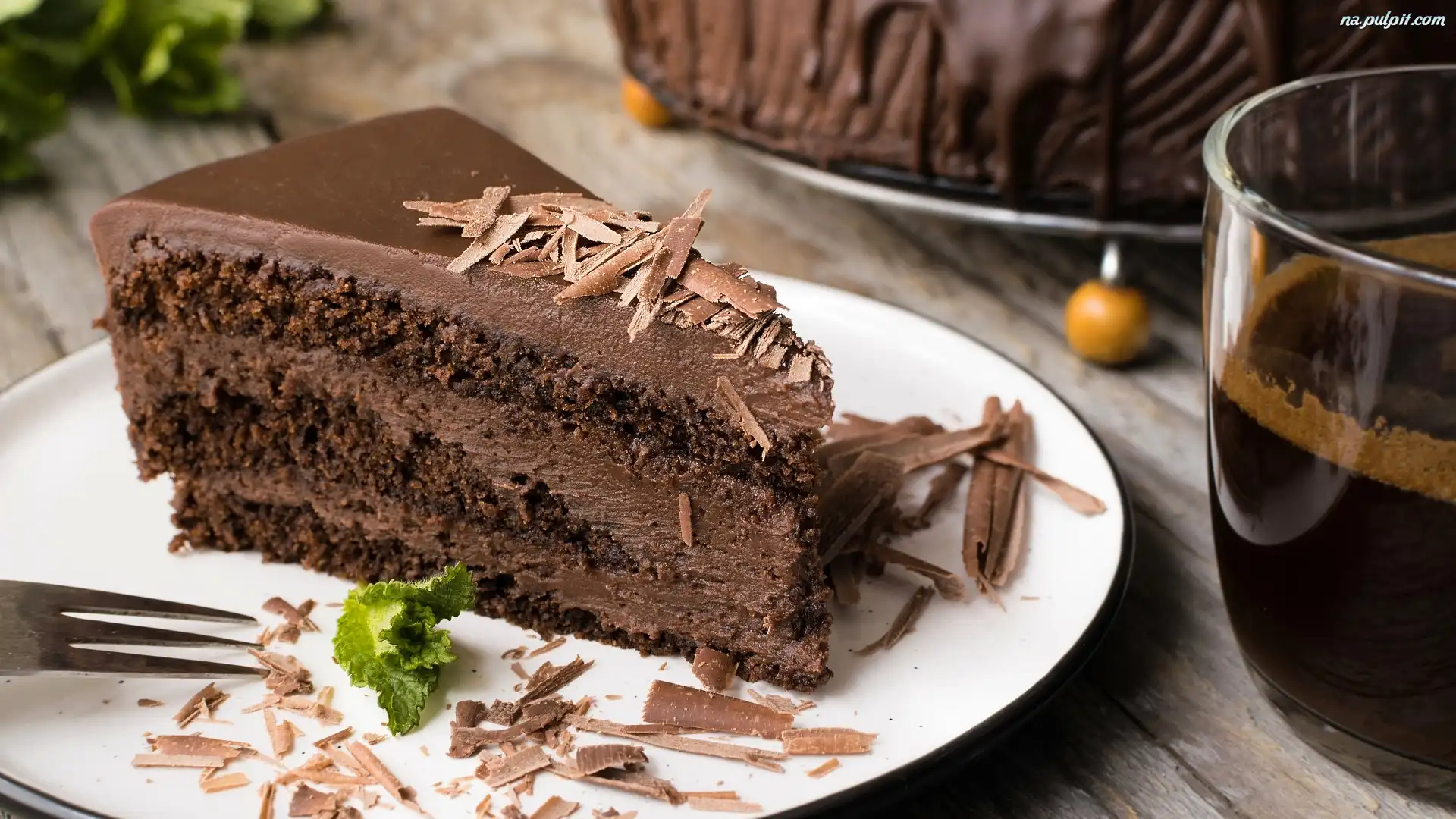 Kawa, Talerz, Kawałek, Tort czekoladowy, Mięta Na Pulpit