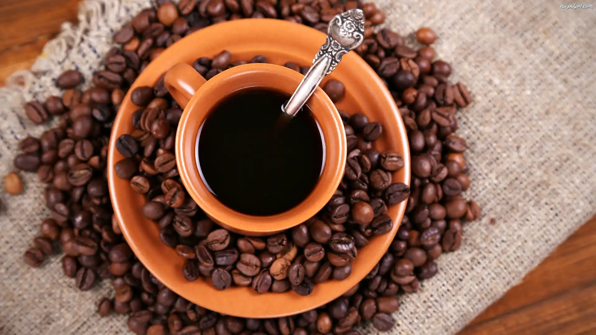 Serwetka, Kawa, Łyżeczka, Filiżanka, Brązowa, Ziarna, Talerzyk Na Pulpit