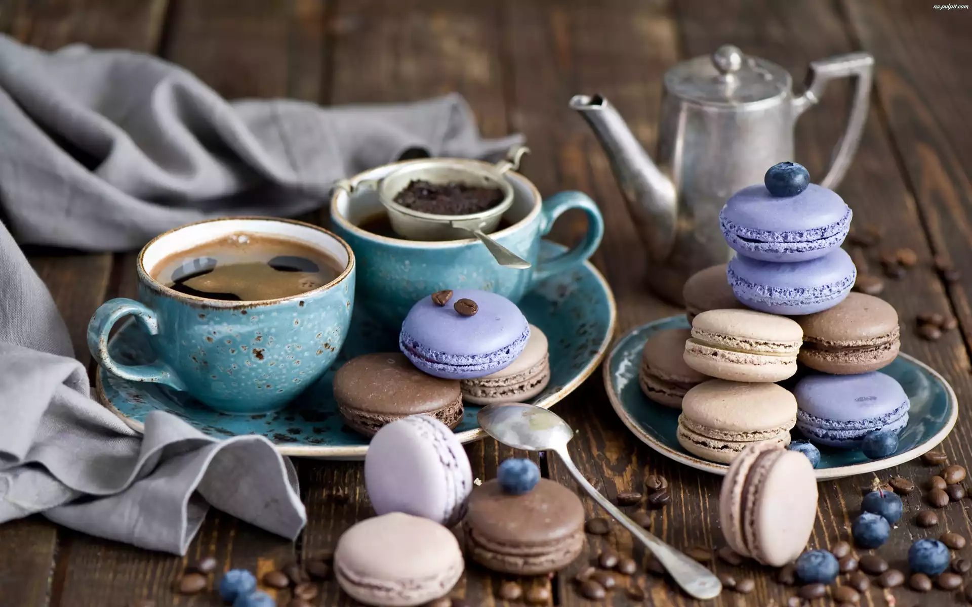 Kawa, Filiżanki, Talerzyki, Ciasteczka, Ziarna, Jagody Na Pulpit