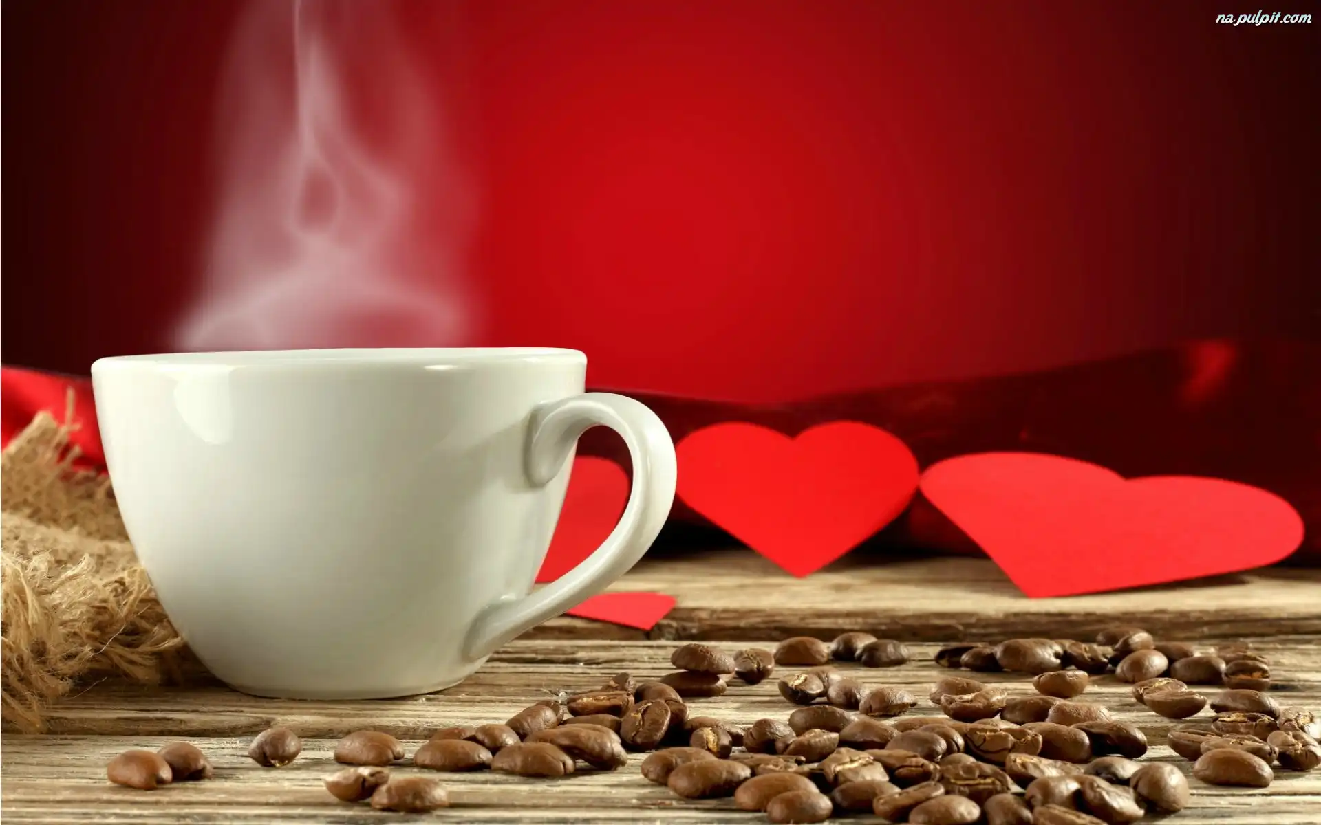 Kawy, Walentynki, Kompozycja, Serduszka, Filiżanka, Ziarna Na Pulpit