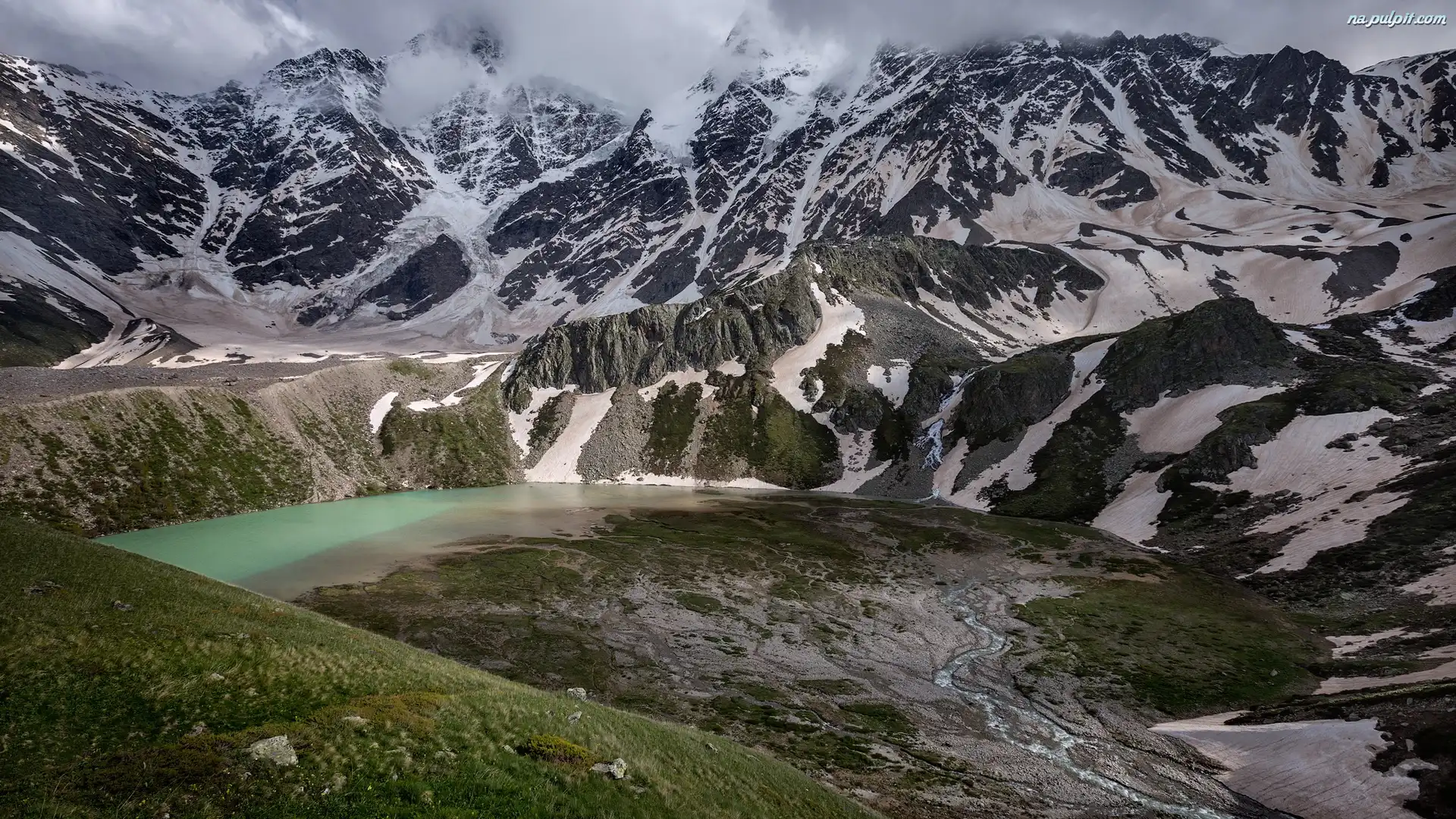 Kaukaz, Kabardo-Bałkaria, Rosja, Śnieg, Góry, Jezioro Donguz Orun Kel Na Pulpit