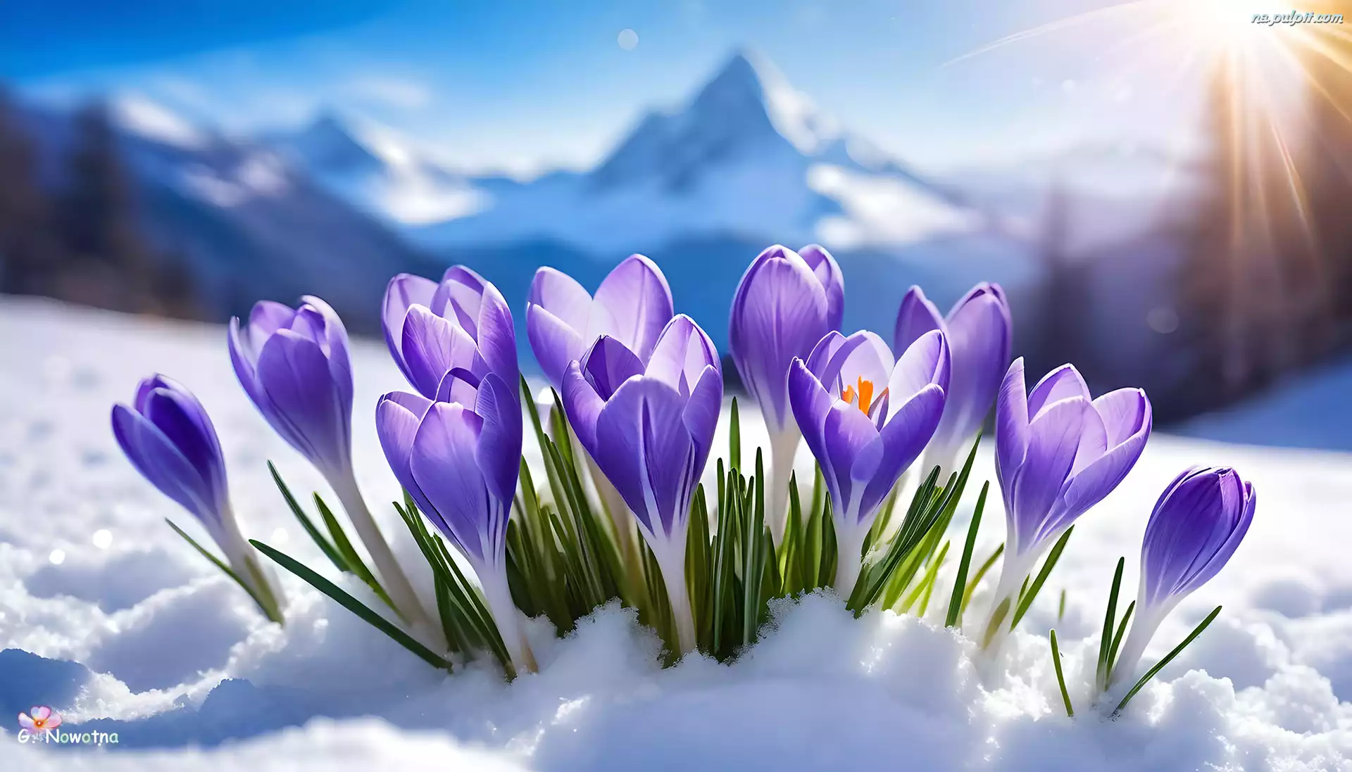 Śnieg, Fioletowe, Kwiaty, Kępka, Krokusy, Grafika Na Pulpit