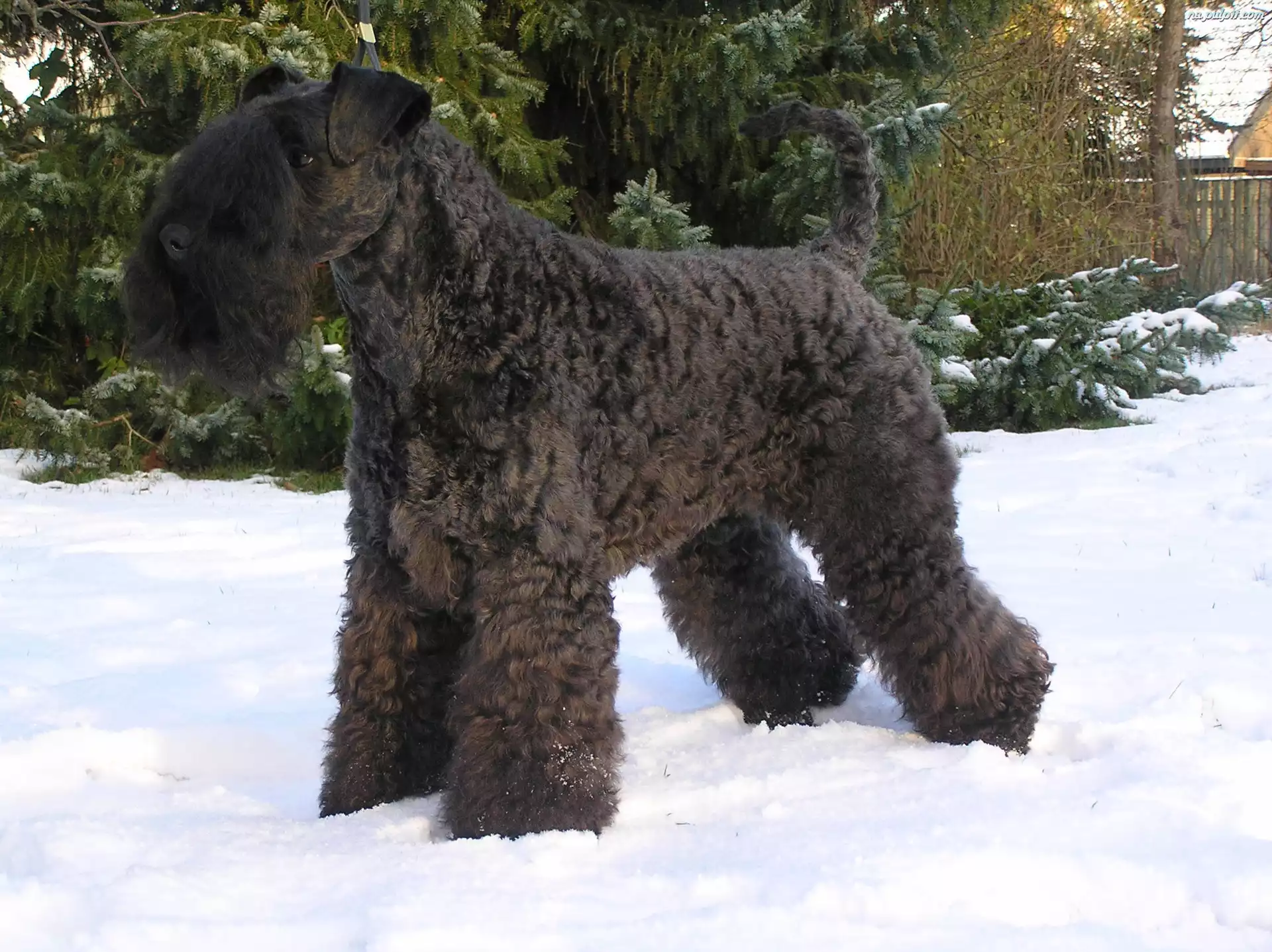 Kerry blue terrier, sofa Kerry blue terrier, śnieg trawa, Kerry blue terrier, soczysta Kerry blue terrier trzy, Kerry blue terrier głowa, Kerry blue terriera
