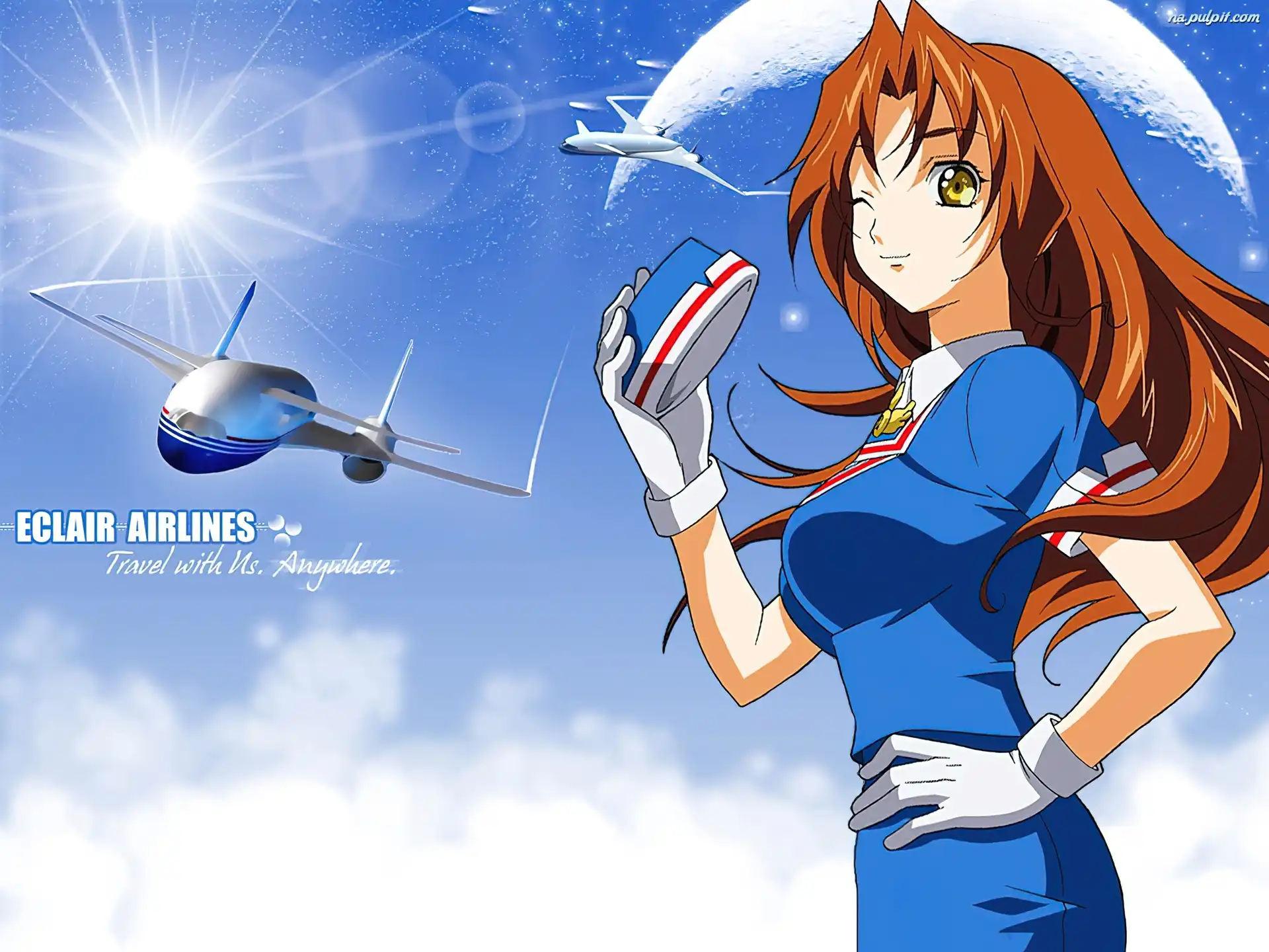 kobieta, samoloty, moon, Kiddy Grade Na Pulpit