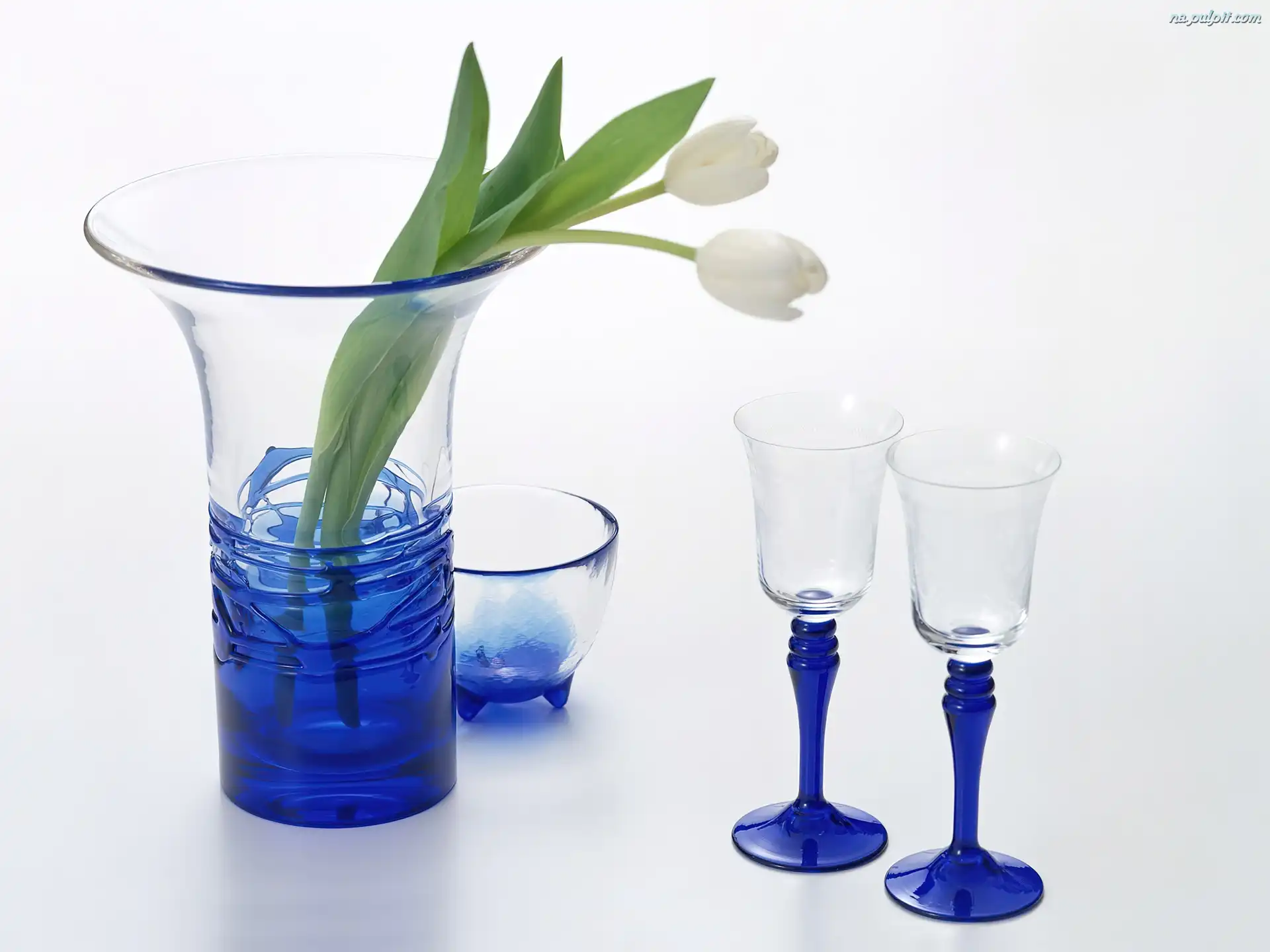 Kieliszki, Tulipany, Białe, Dwa, Wazon