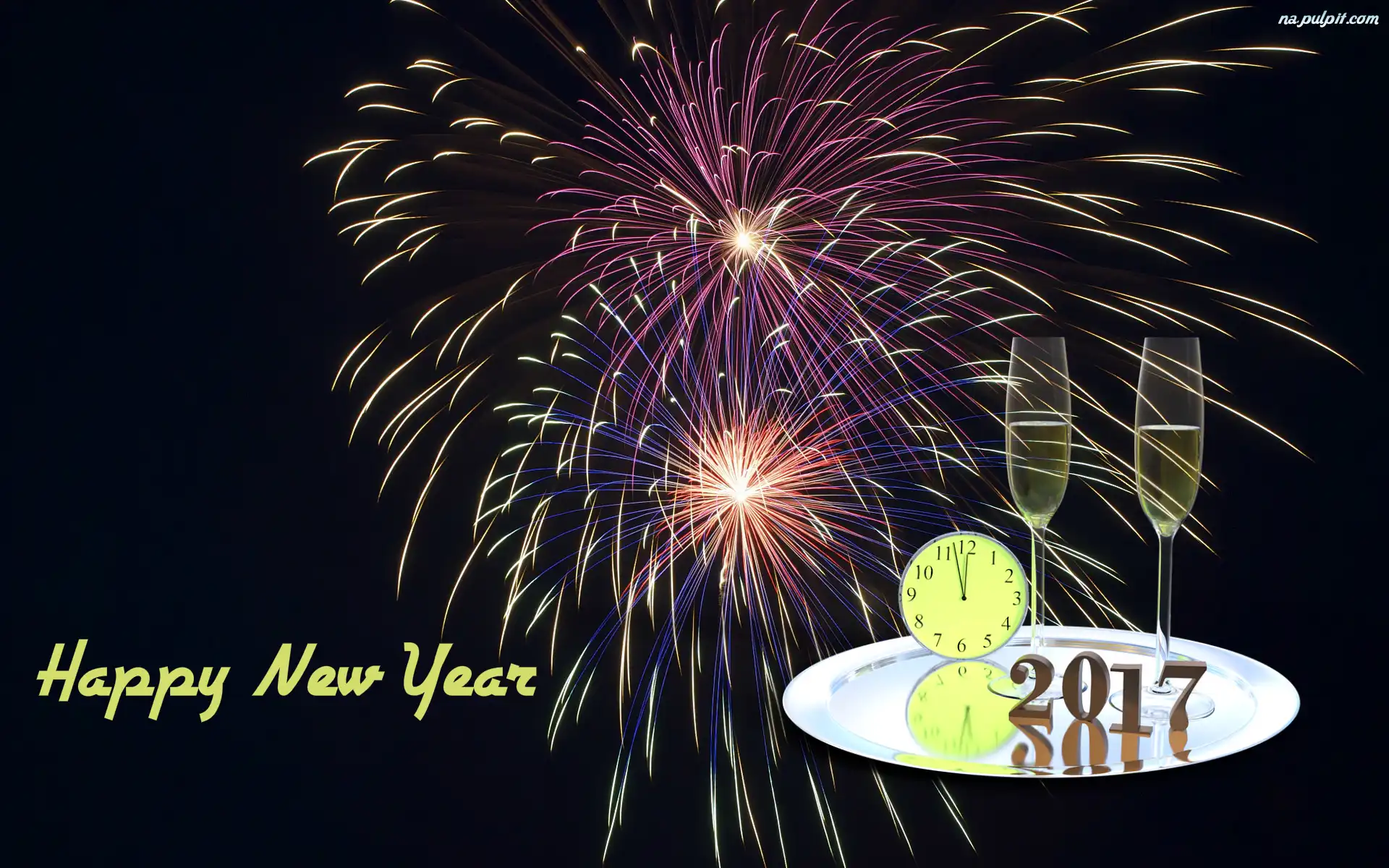 Kieliszki, 2017, Życzenia, Taca, Fajerwerki, Zegar Na Pulpit
